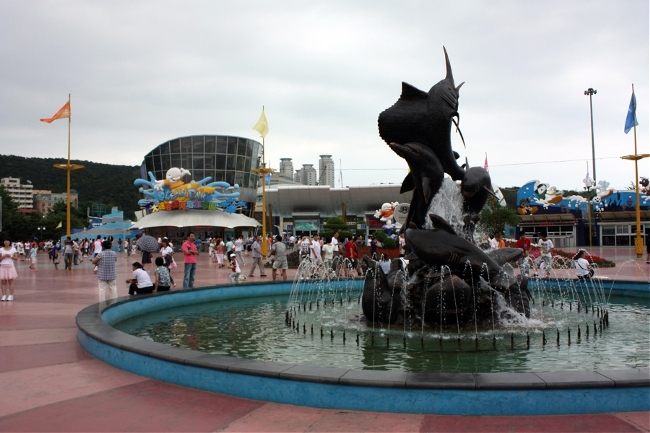 매마른 분수에서도 아이들은 신나게 잘 논다.