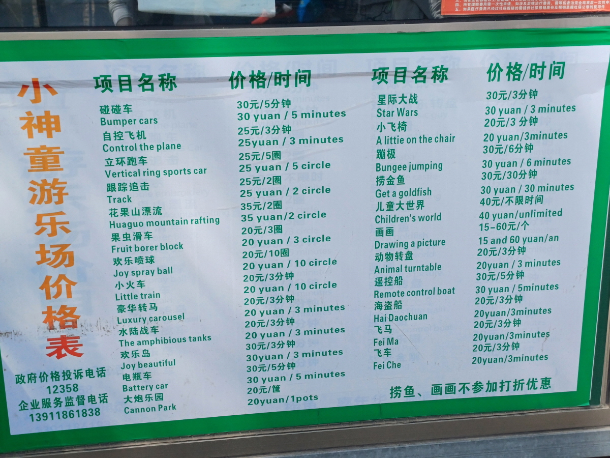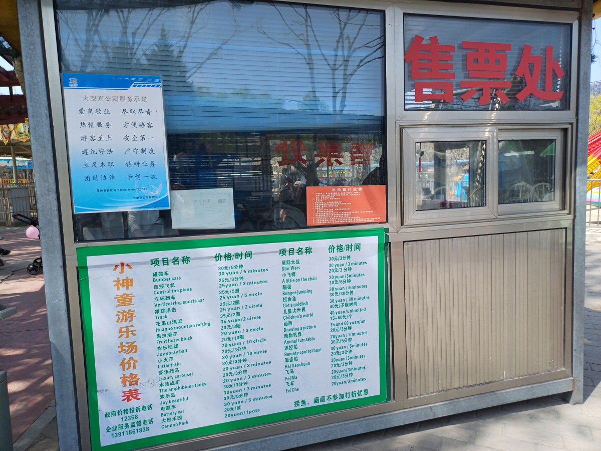 매표소에서 200위안이 충전 된 카드를 구매할 수 있고, 카드를 스캔하는 방식으로 놀이기구 이용이 가능하다. 보통 놀이기구 당 20~30위안 수준이었으며, 놀이기구를 이용할 때마다 직원들이 잔액을 알려줘서 편하게 이용할 수 있었다. 놀이기구 당 개별 결제로도 이용 가능하며, 이용 완료한 카드는 반납하면 잔액을 환불해 준다.