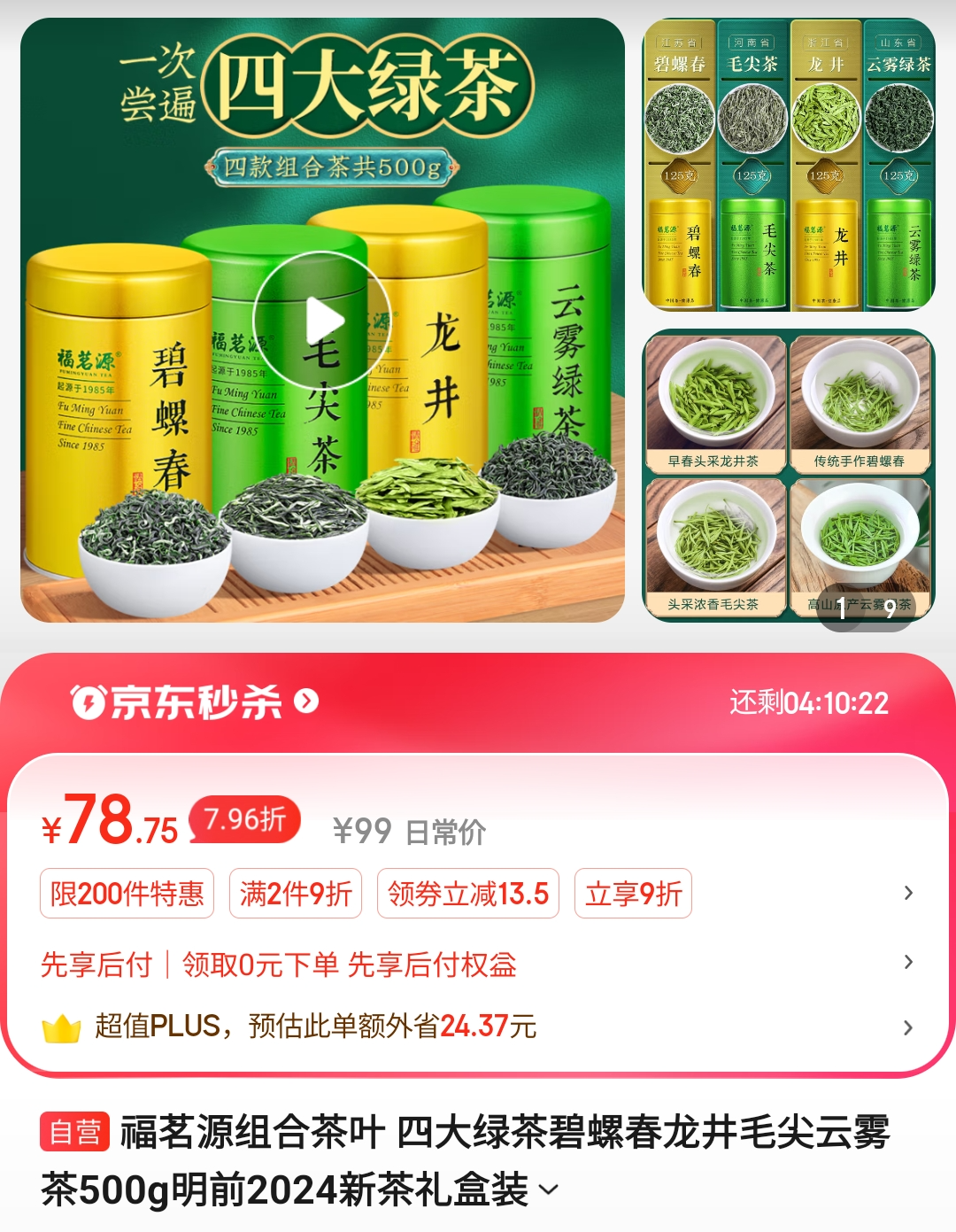 징동(京东) 온라인 쇼핑몰에서 녹차세트 구매