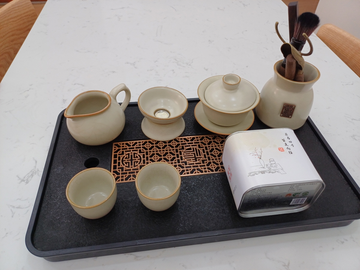 시음을 위해서 일단 다구를 세팅했다. 상품 정보에 추천 다구에 개완으로 나와 있기도 하고, 검색해 보니 안계철관음의 경우 개완으로 우리는 것을 추천한다고 하길래 개완으로 우릴 준비를 했다.