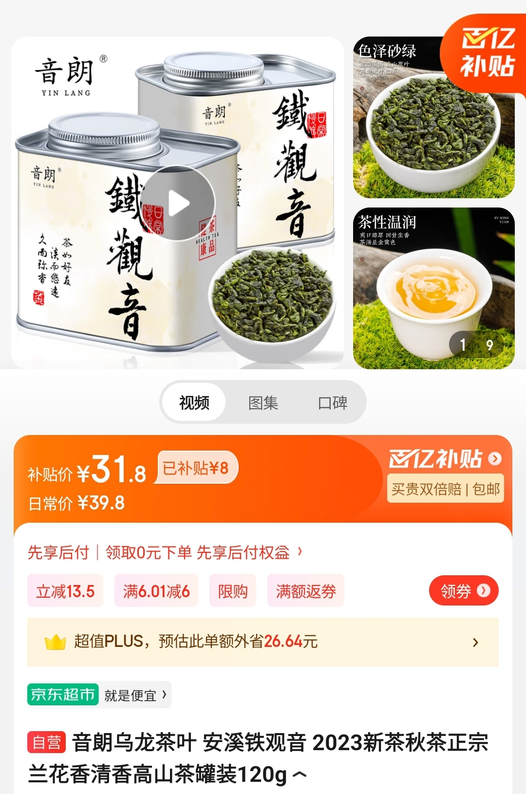 구매하고자 하는 차는 우롱차를 대표하는 안계철관음으로, 선택 기준은 2024년에 생산한 신선한 제품 중 용량은 100g 정도로 포장이 견고한 것을 기준으로 검색을 해봤으며, 30위안 대에 적당한 제품이 있어서 바로 구매를 해봤다.