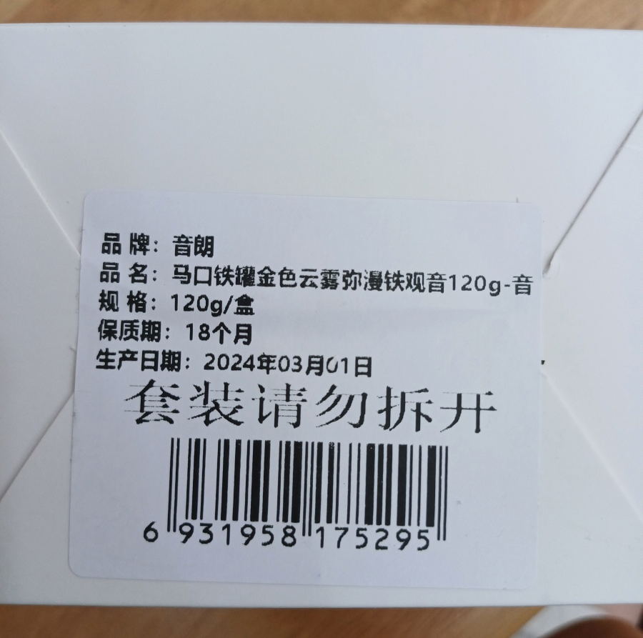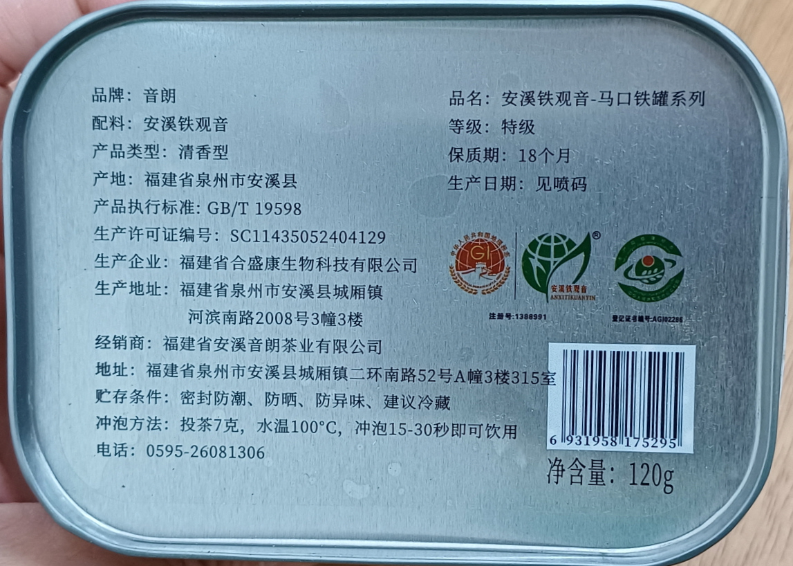 제품 하단에는 상품 정보들이 적혀 있었으며, 생산지역을 살펴보니 확실히 천주시(泉州市) 안계현(安溪县)으로 되어 있는 것으로 보아 안계철관음이 확실히 맞았다.