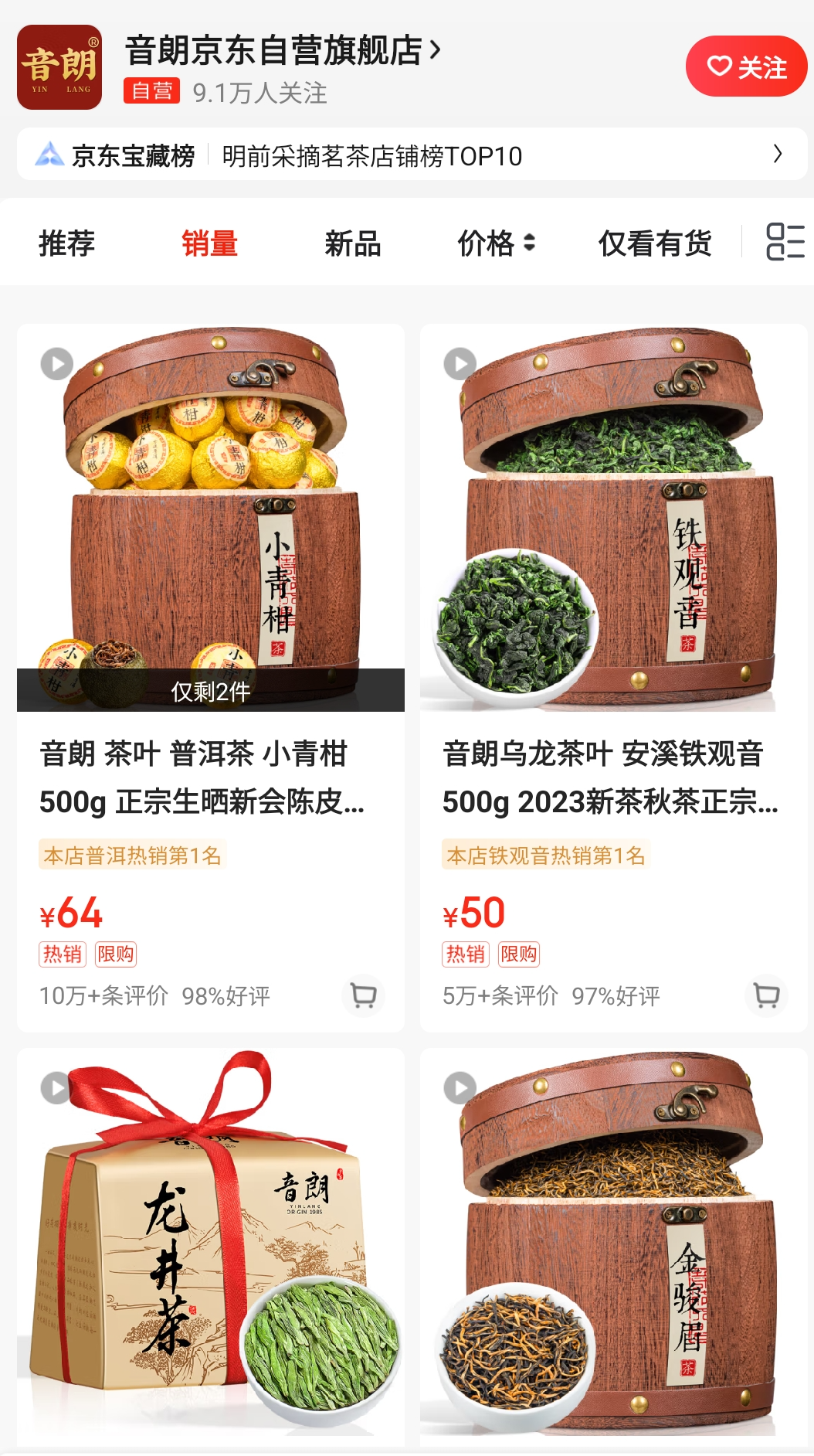 징동(京东) 온라인 쇼핑몰에서 안계철관음 구매