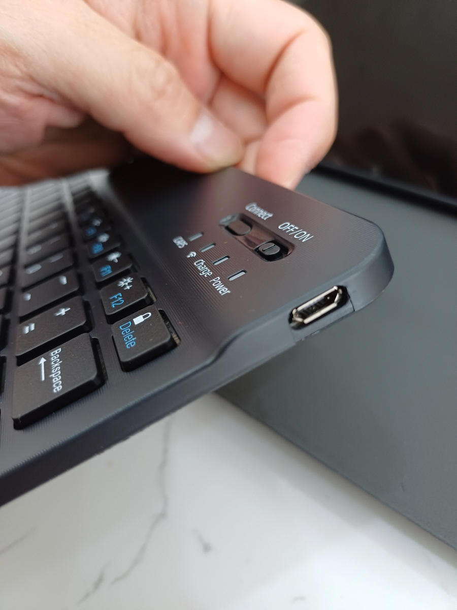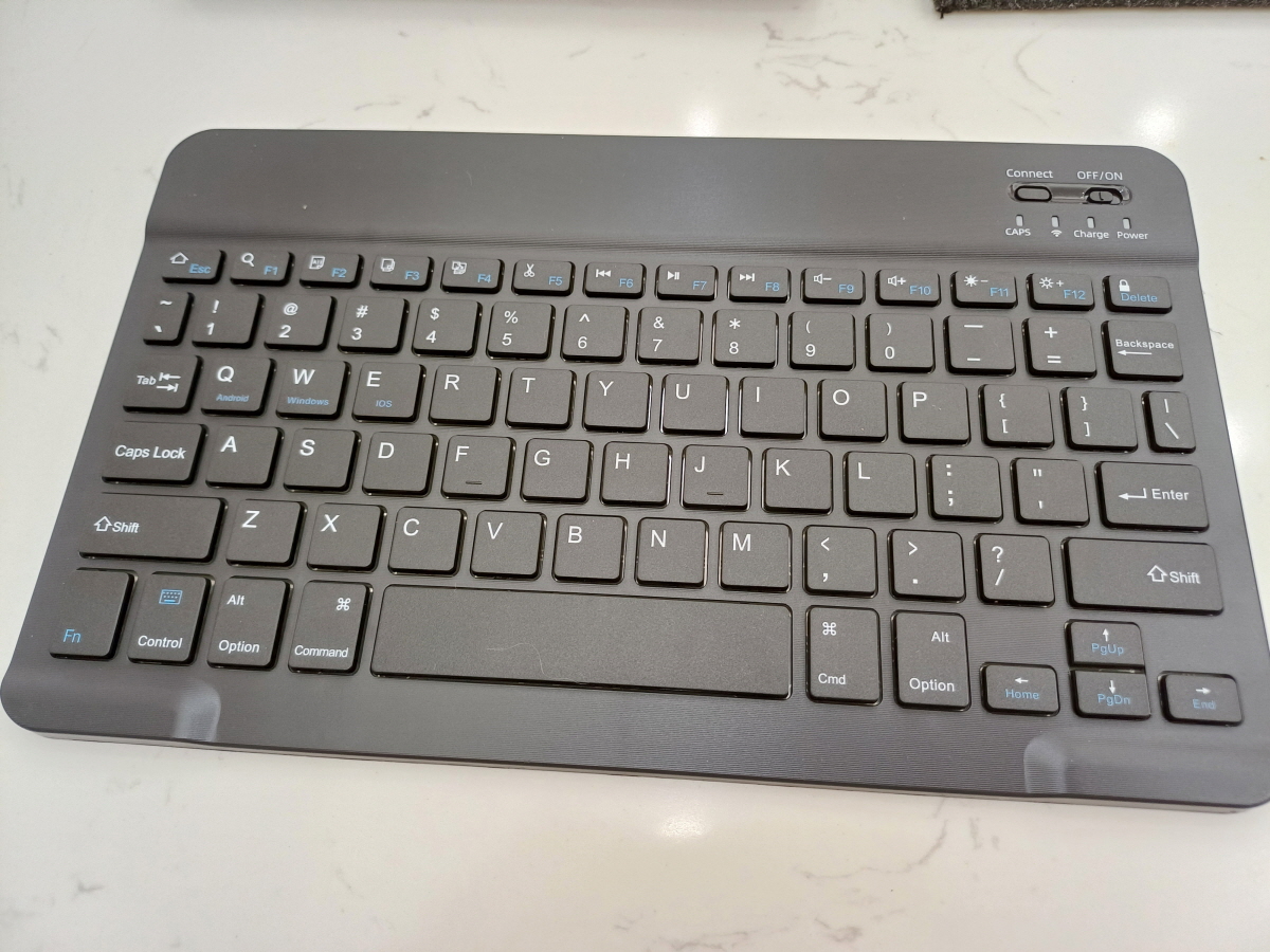 작지만 있어야 할 버튼은 다 있는 아담한 사이즈의 키보드다. 키패드 입력 시 소음도 적고 입력 감도도 괜찮았다. 내장된 베터리를 충전해서 사용하는 방식인데 아쉽게도 충전 단자가 C타입이 아니지만 별도의 충전 케이블이 포함되어 있으니 충전에는 문제없다.