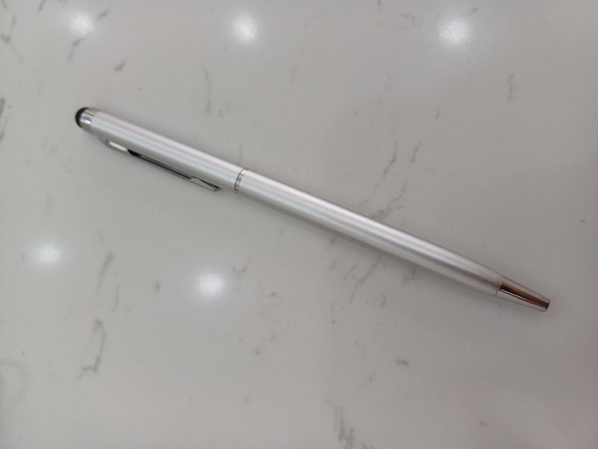 증정품인 태블릿 전용펜인데 펜 앞부분은 진짜 볼펜이고, 동그란 뒷 부분이 태블릿펜 부분으로 세밀한 필기에는 적합한 제품은 아니었다.