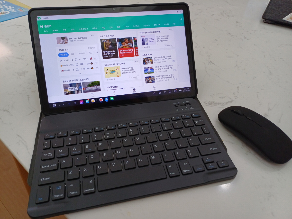 구매 후 며칠 간 키보드를 연결해서 PC모드로 태블릿을 사용하고 있는데, 기대 이상으로 문서 작성이나 블로그 작성 시 너무 유용했다.