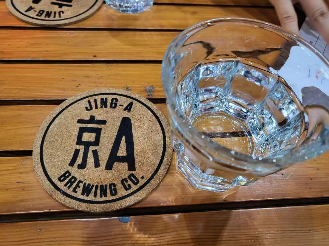 JING-A 마크가 그려져 있는 맥주컵 받침