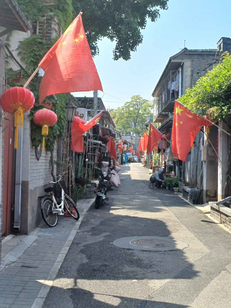 서해를 둘러본 후 서해 부근의 후통을 거닐어봤는데 로컬 분위기가 정말 살아 있었다. 노동절이라고 집집마다 걸려있는 중국 국기가 인상적이었다.