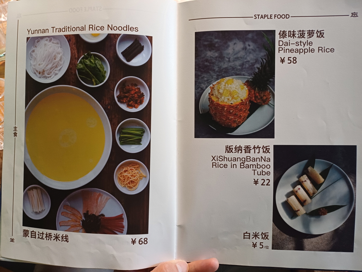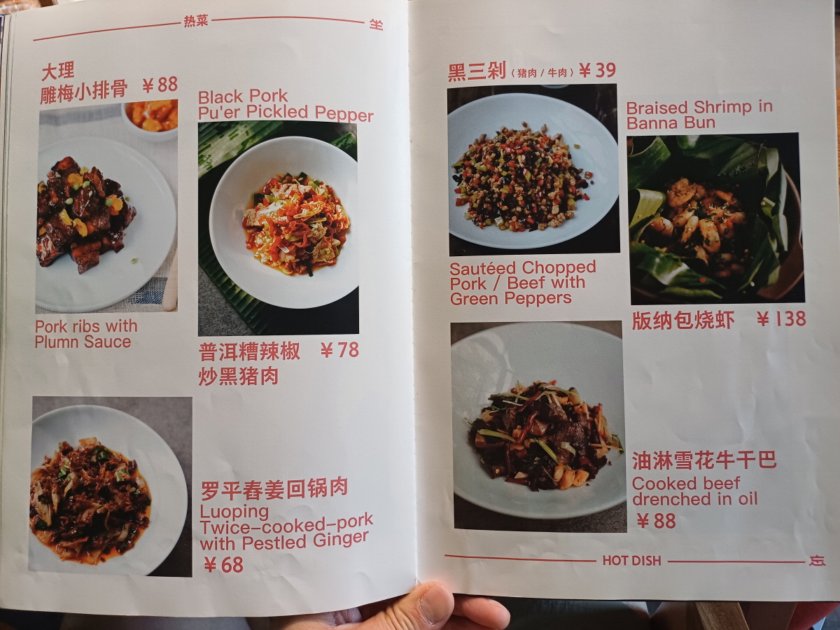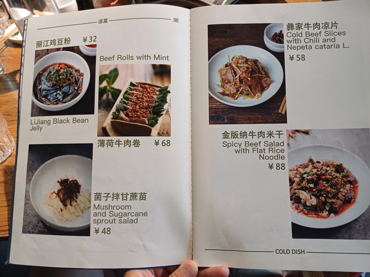 '리장테마레스토랑(丽江主题餐厅)'라고 적혀있는 것으로 봐서 운남성 중 리장 지역의 요리 위주로 취급하는 것으로 보인다.