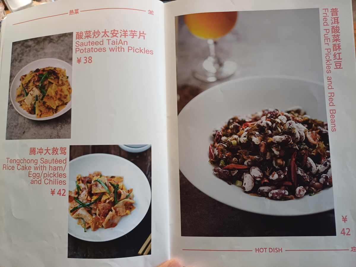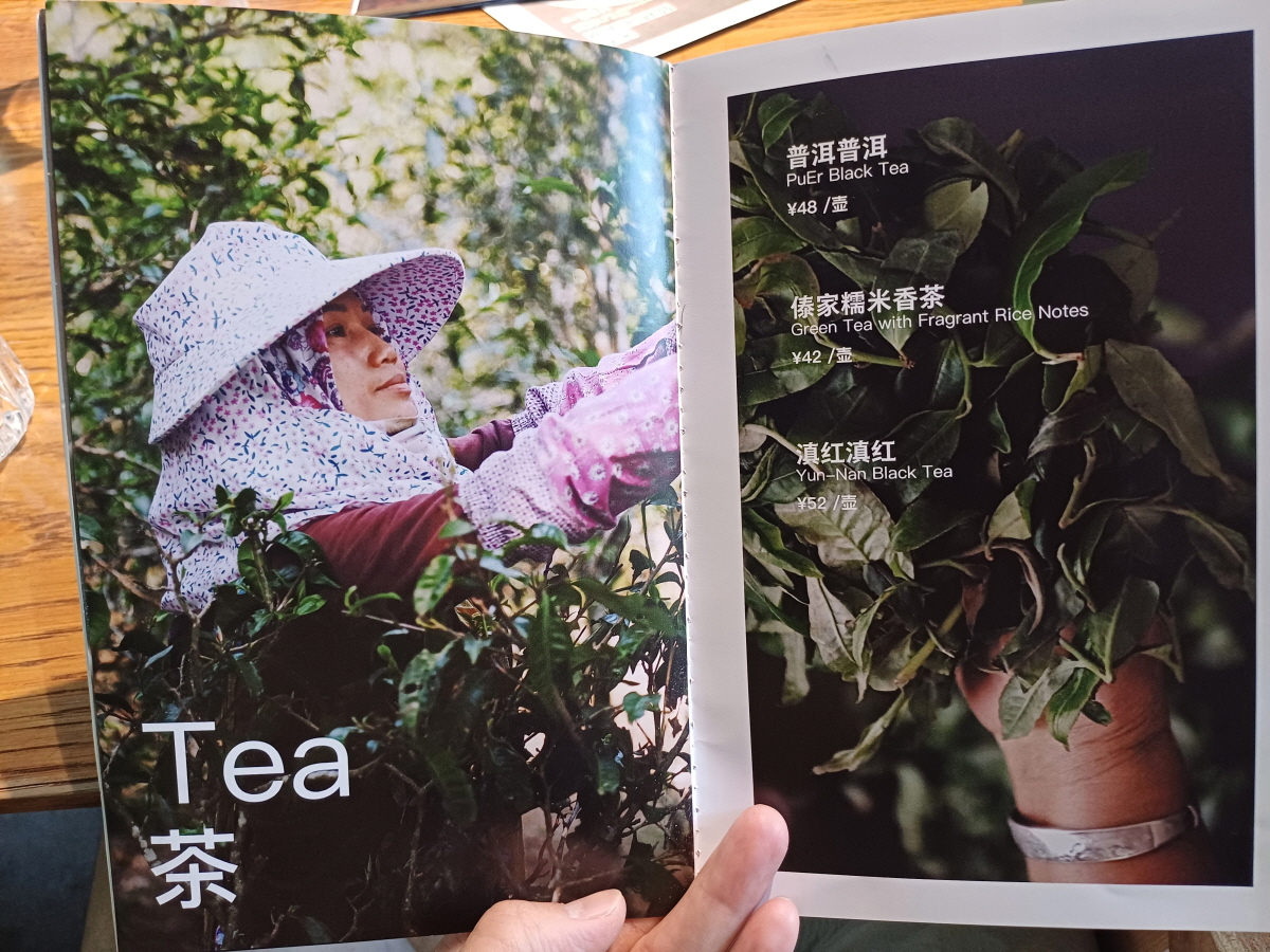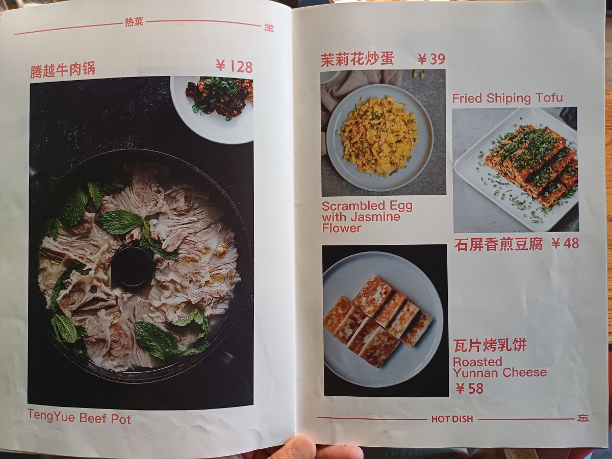 '리장테마레스토랑(丽江主题餐厅)'라고 적혀있는 것으로 봐서 운남성 중 리장 지역의 요리 위주로 취급하는 것으로 보인다.