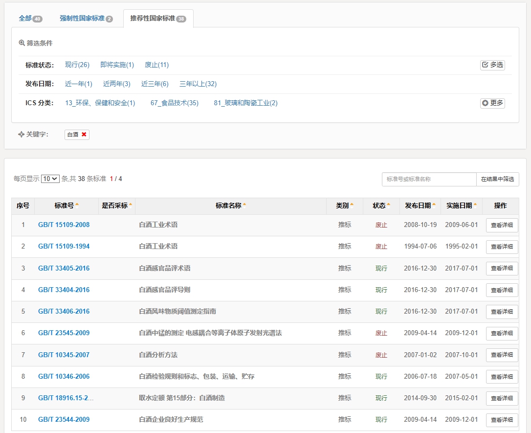 그 중 장향형백주(酱香型白酒) 표준번호를 조회해 봤다.