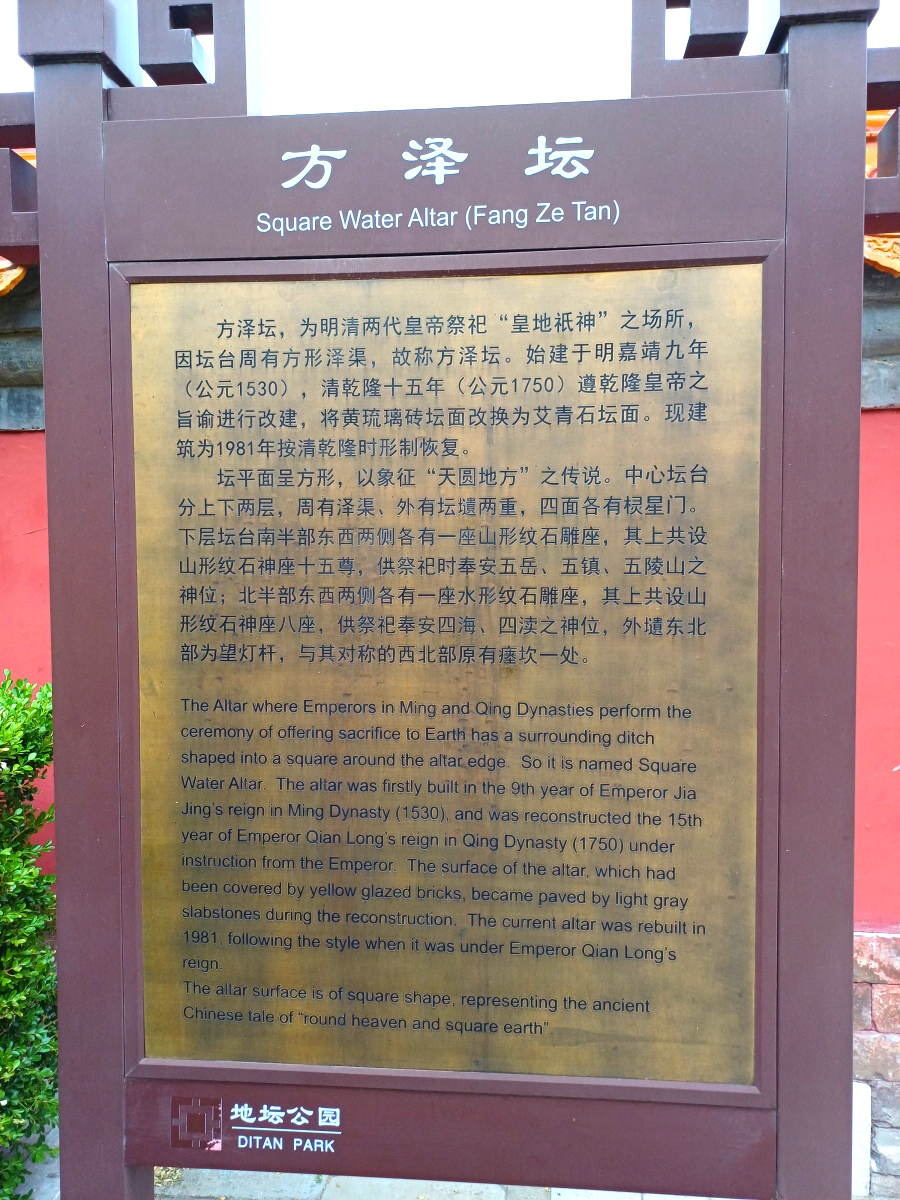 지단의 과거 이름이었던 방택단(方泽坛)에 대한 설명을 간단히 읽어준 뒤 재단에 들어가 봤다.