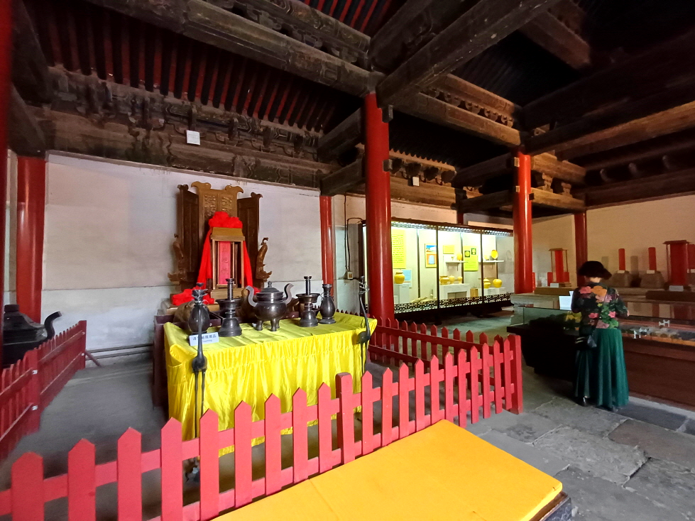 왕의 자리로 보이는 가운데 자리 잡고 있고 좌우로 박물관처럼 각종 제사 용품 및 전시구간이 자리 잡고 있다.