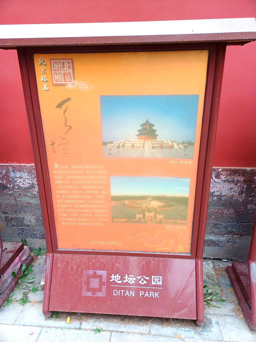 보통 북경 관광 시 오단(五坛) 중 주로 유명한 천단공원(天坛公园)만 방문하는 것이 일반적인데, 제한된 시간 내에 북경의 여러 여러 명소를 봐야 하는 관광의 특성상 솔직히 천단공원만 가는 것이 맞다고 본다.