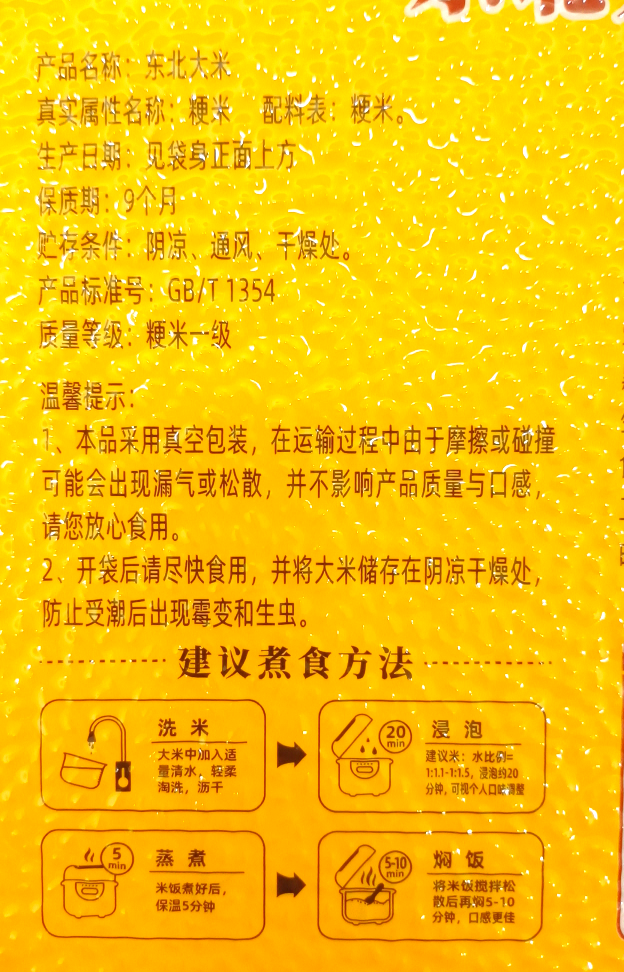 -산품명칭(产品名称) :동북대미(东北大米)