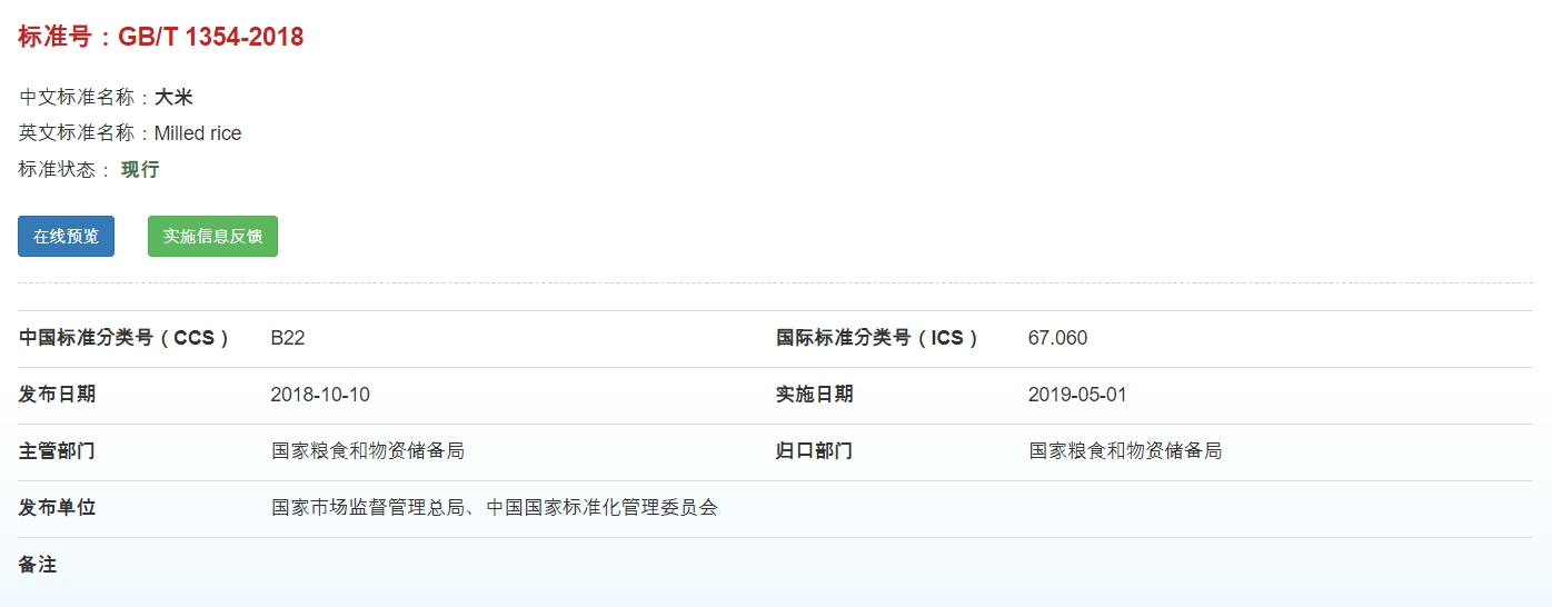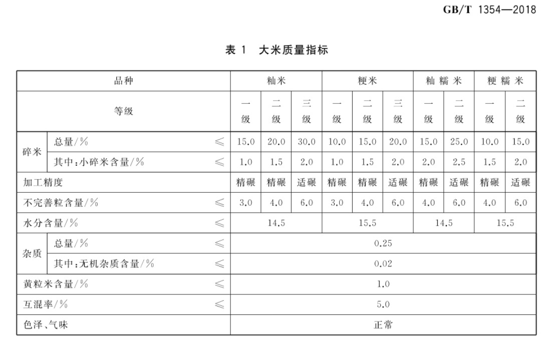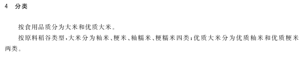일단 중국 국가표준에서는 쌀을 어떻게 분류하고 있는지 검색을 해봤다.