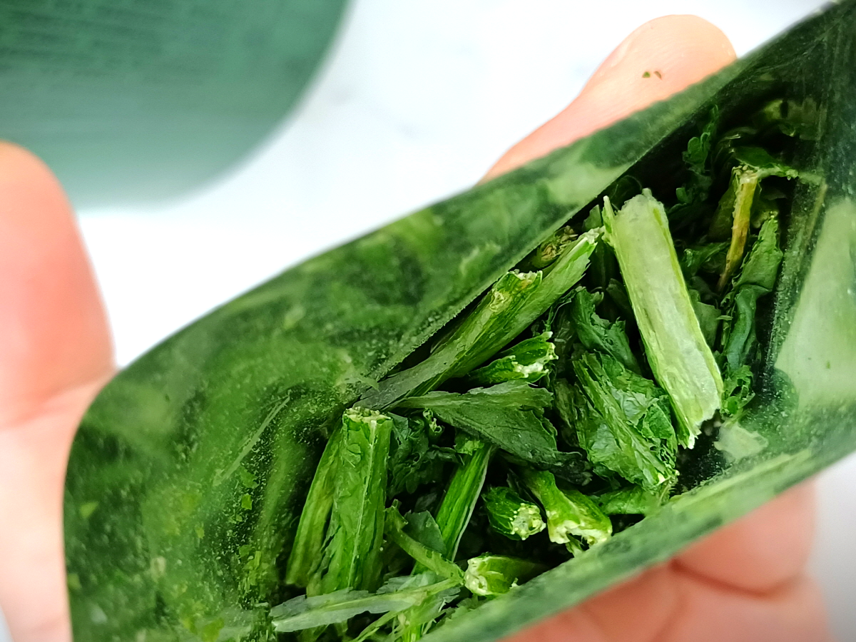 4분 경과 후 건조 고수를 넣어줬다. 봉지 안에 고수는 아주 잘 건조가 되어 있어서 그런지 고수만의 강한 향은 거의 느껴지지 않았다.