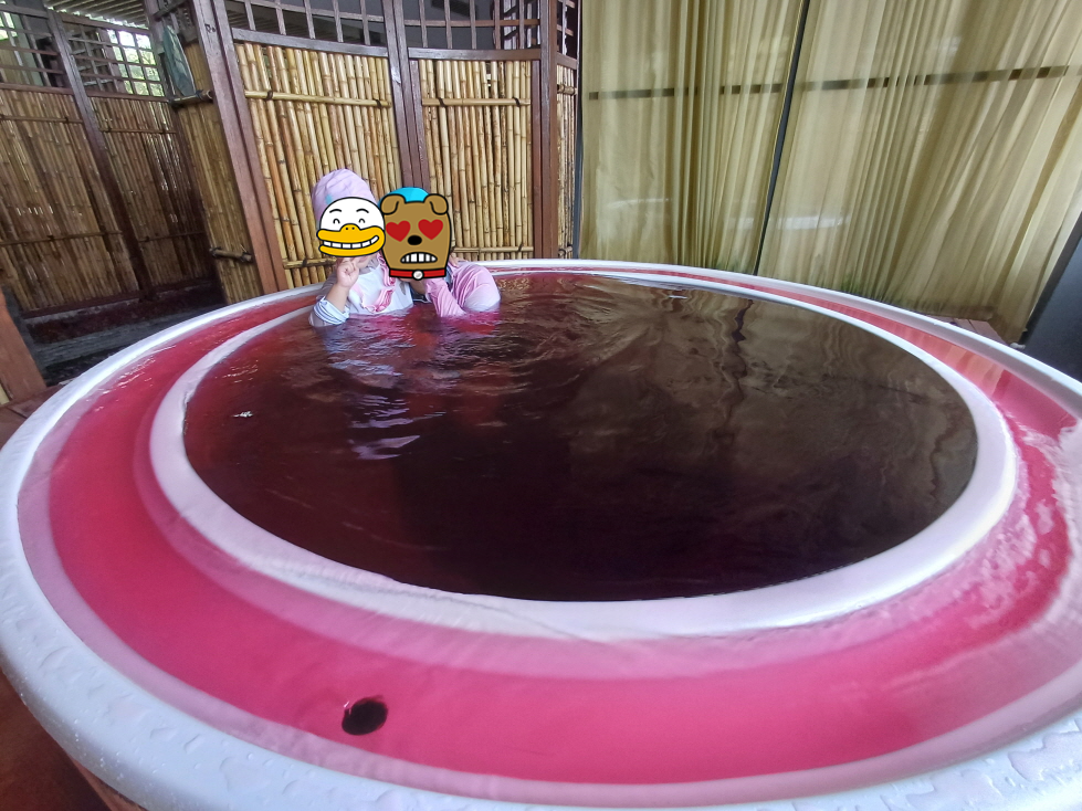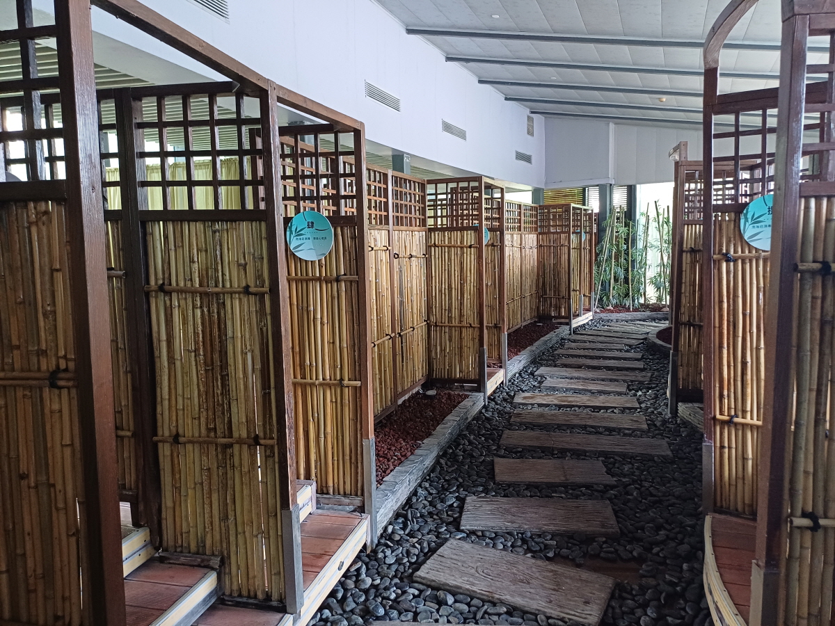 2층으로 올라가는 계단에서 조금 안쪽으로 들어가면 테마 노천탕들이 나오는데 이곳 노천탕에는 지붕이 잘 갖춰져 있어서 따가운 햇볕 걱정 없이 이용이 가능했다.