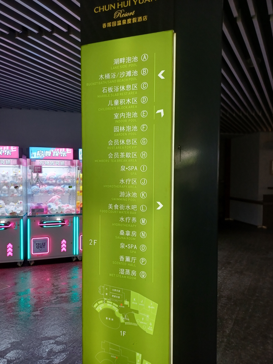 춘휘원은 거대한 리조트인데 온천 시설은 남문 쪽에 위치하고 있기 때문에 온천을 이용하려면 남문 쪽으로 오면 된다.