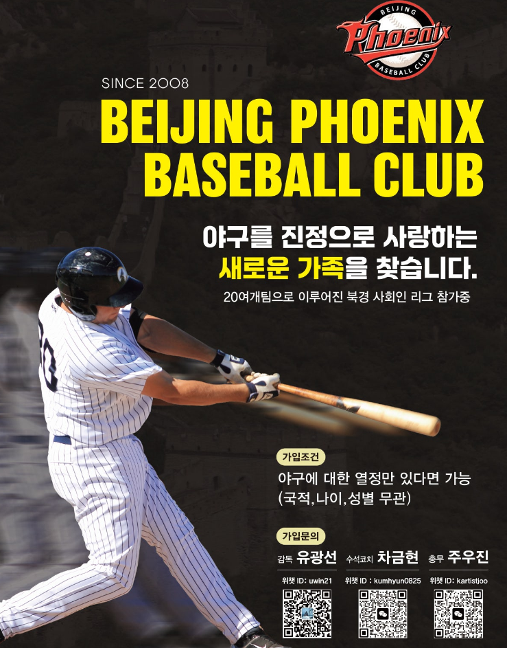 북경에서 즐겁게 사회인야구를 즐길 수 있도록 교민야구팀을 운영하는 운영진분들에게 정말 감사한다.