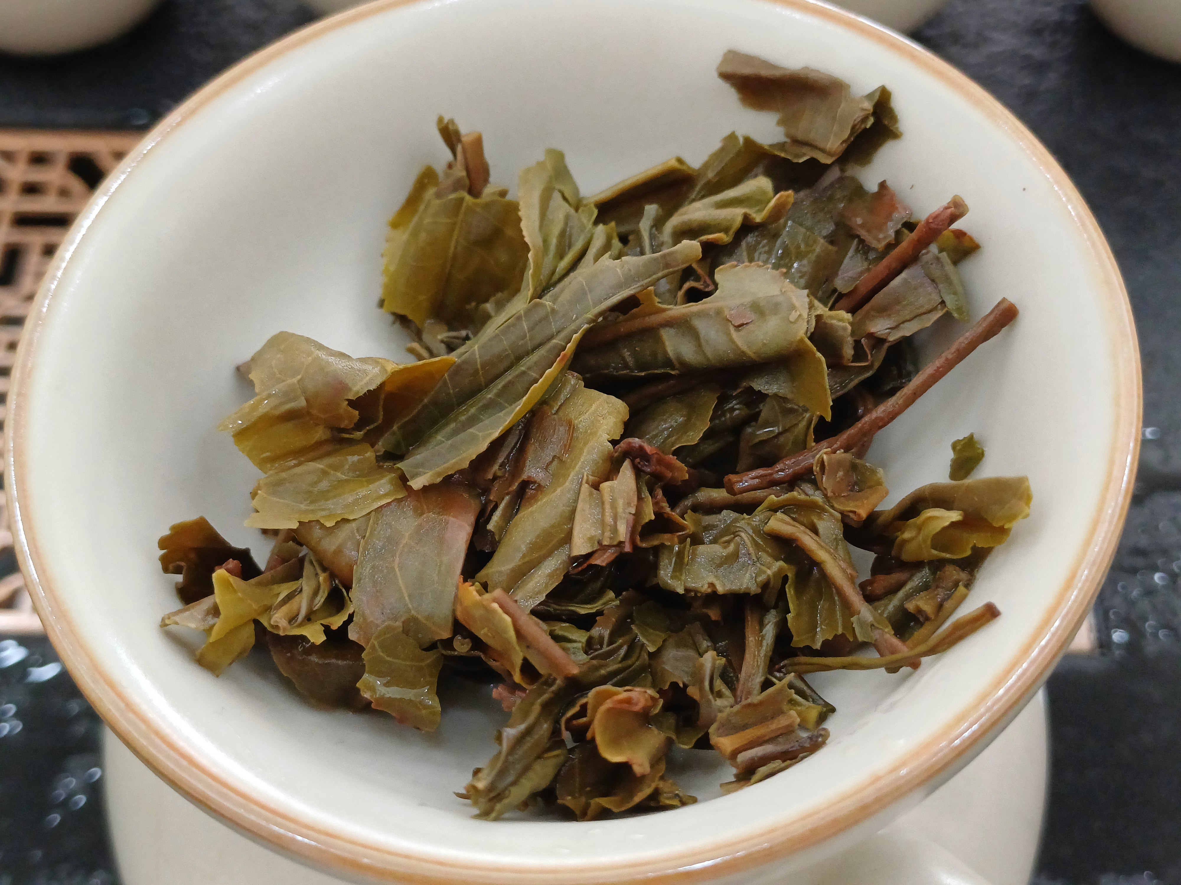비교적 긴압차 덩어리에서 찻잎은 쉽게 분리가 되었으며 찻잎의 비릿한 향도 은은하게 풍겨왔다. 펼쳐 놓은 철관음? 같은 느낌이 들었다.