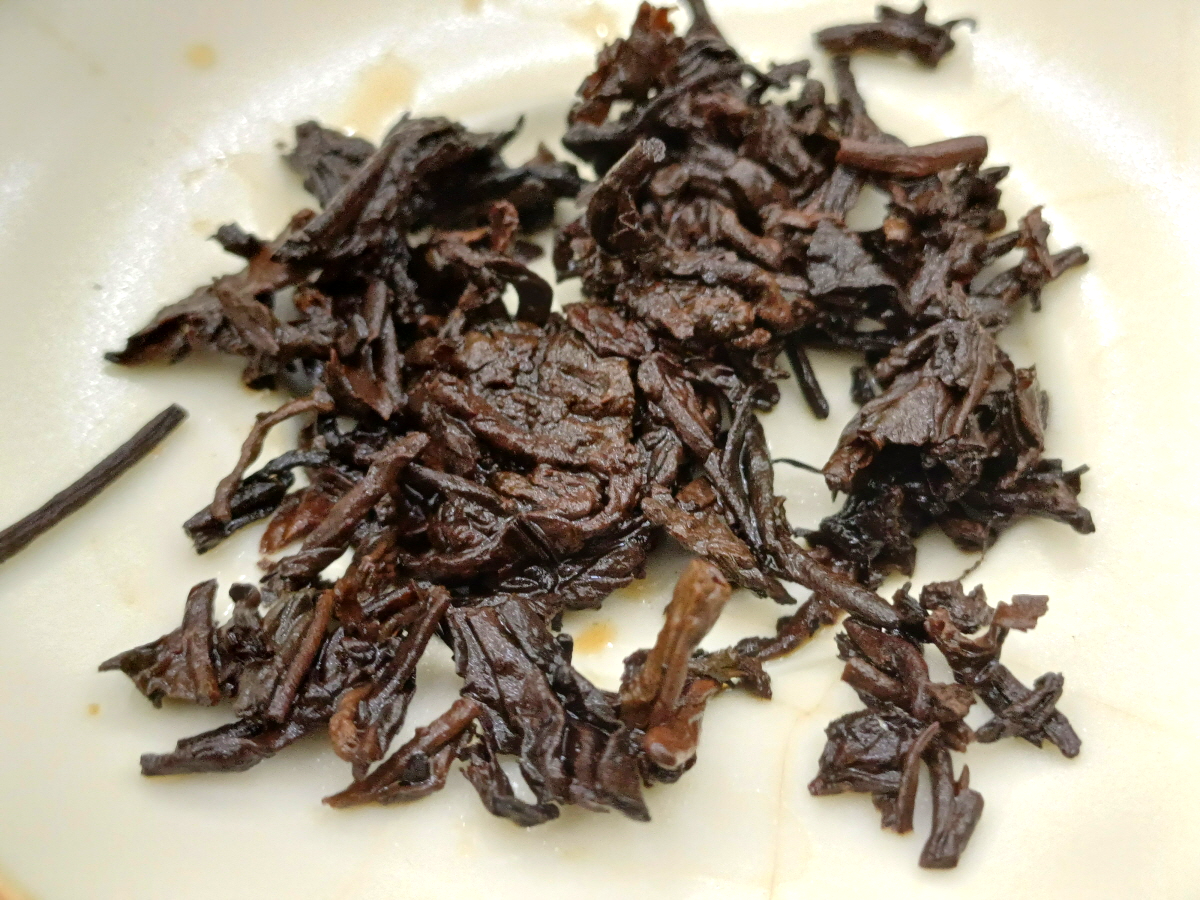 우려낸 찻잎을 살펴보니 여전치 전체적으로 짙은 갈색을 띠었으며, 성숙도가 높은 대엽인 7급의 차청을 분쇄해서 만든 차다 보니 새싹이나 어린잎들을 찾아보기 어려웠다.