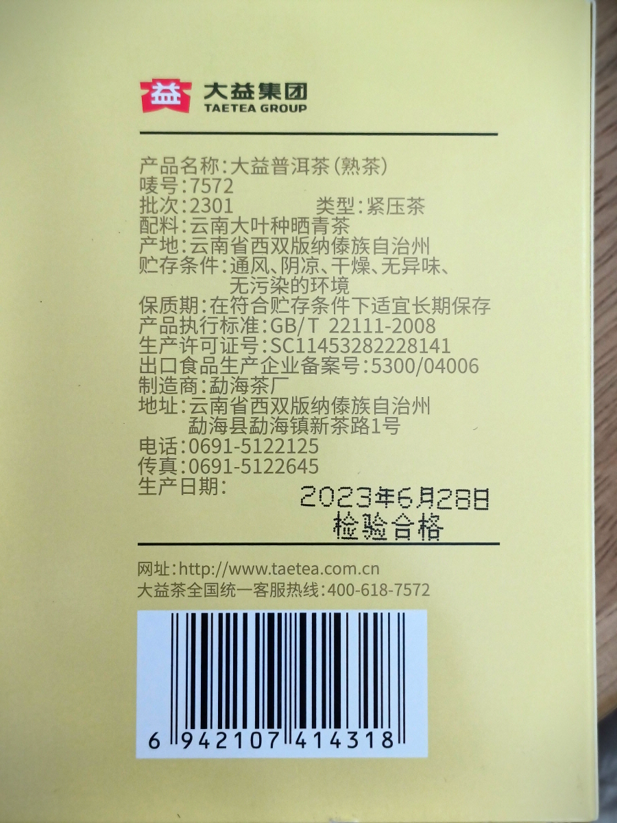일단 생산연도가 크게 보여서 살펴보니 숙차의 경우 2023년 6월 28일 생산, 생차는 2021년 8월 3일에 생산된 제품이다. 숙차의 경우 인위적인 발효를 시켰기 때문에 별도의 숙성과정 없이 바로 시장에 나오고, 생차의 경우 최소 2~3년 정도 정도 자연 숙성 후 시장에 내놓고 있다는 것을 제품의 생산 연도를 통해서 확인이 가능했다.