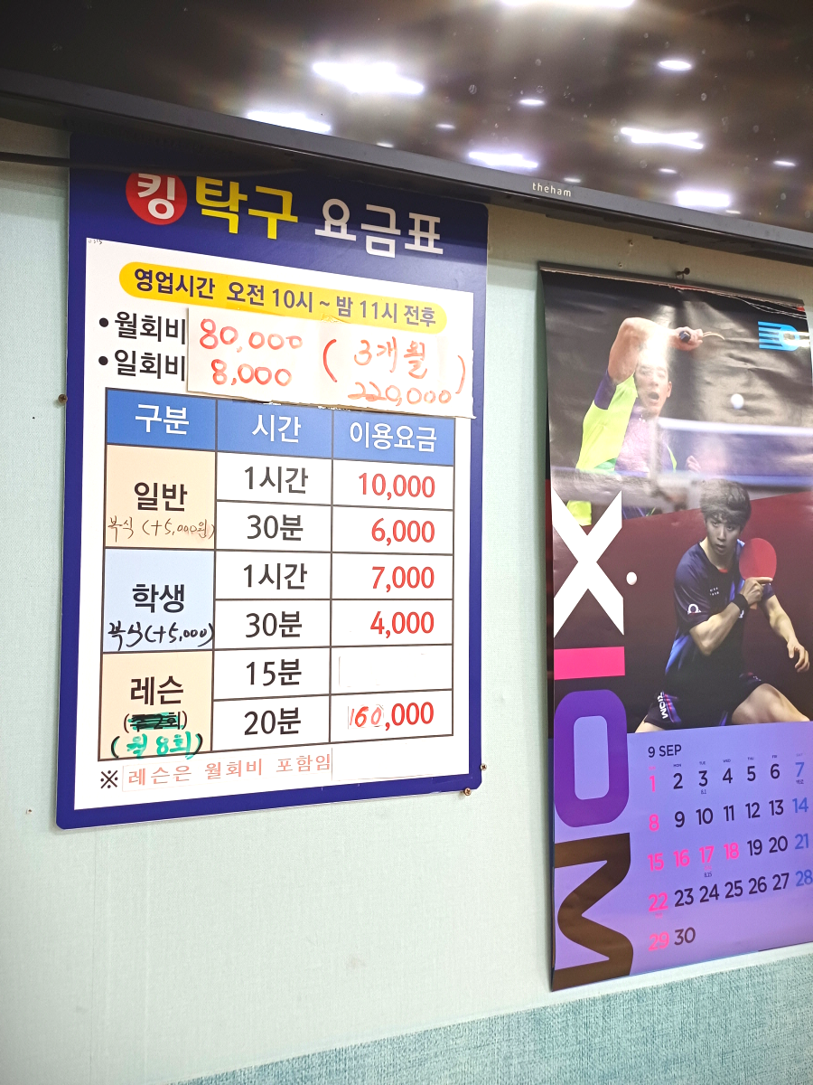 탁구장 안쪽에서는 사장님으로 보이는 분께서 레슨을 진행 중이셨는데, 연휴기간에도 열심히 레슨을 진행하시는 모습에서 열정이 느껴졌다.