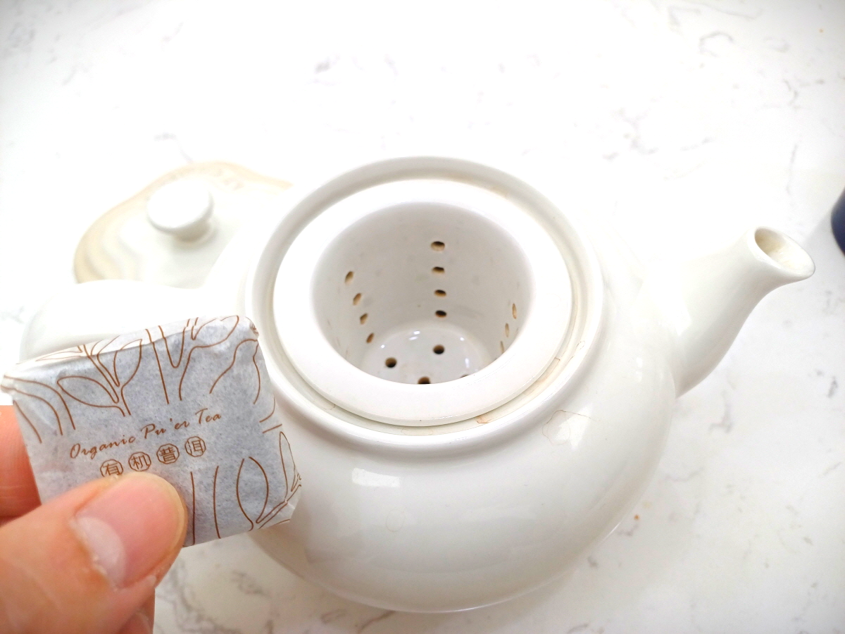 제품의 보이차 우리는 안내법에 나온 것과 동일하게 우리기 위해서 자기 주전자를 꺼냈다.