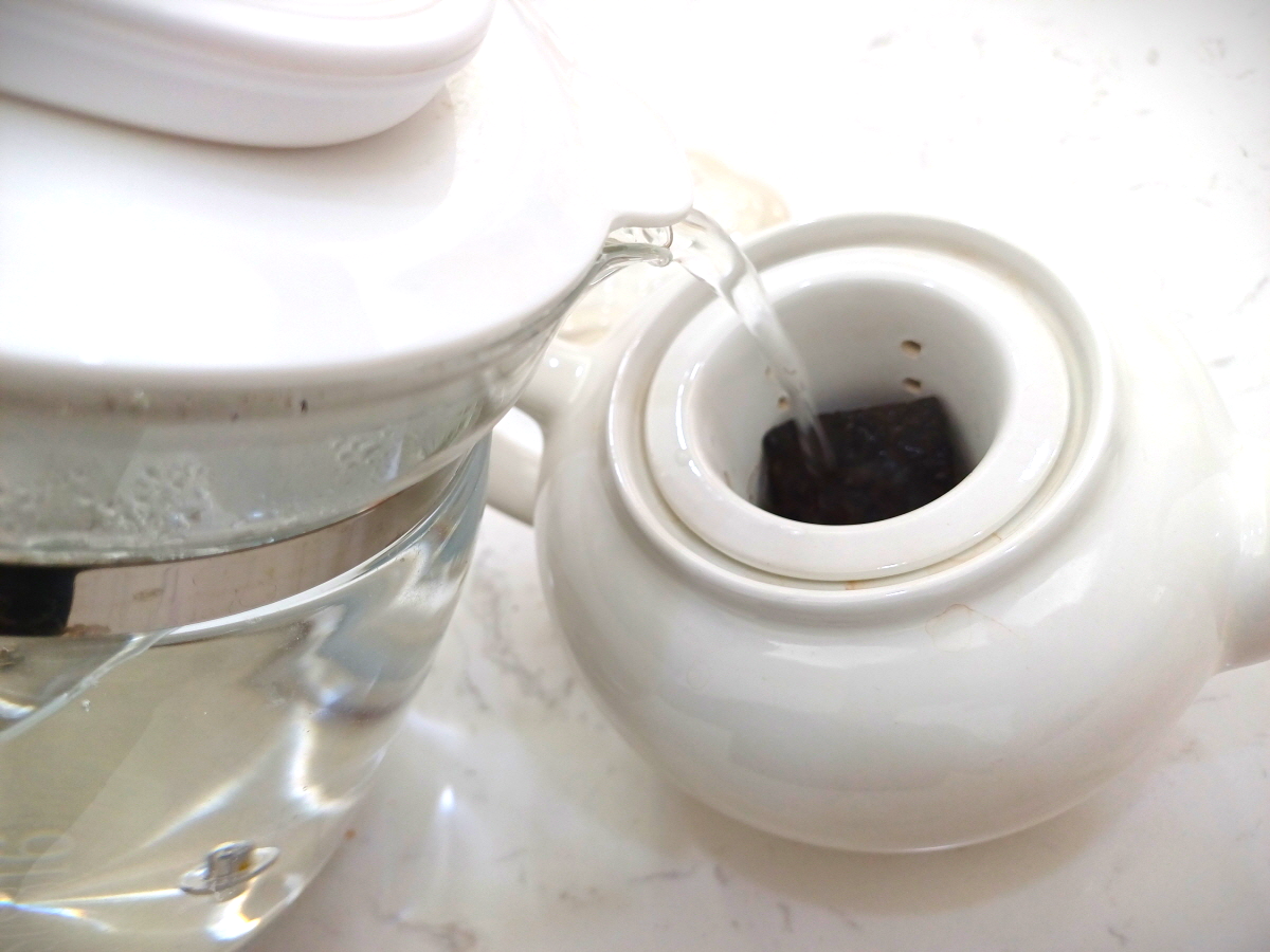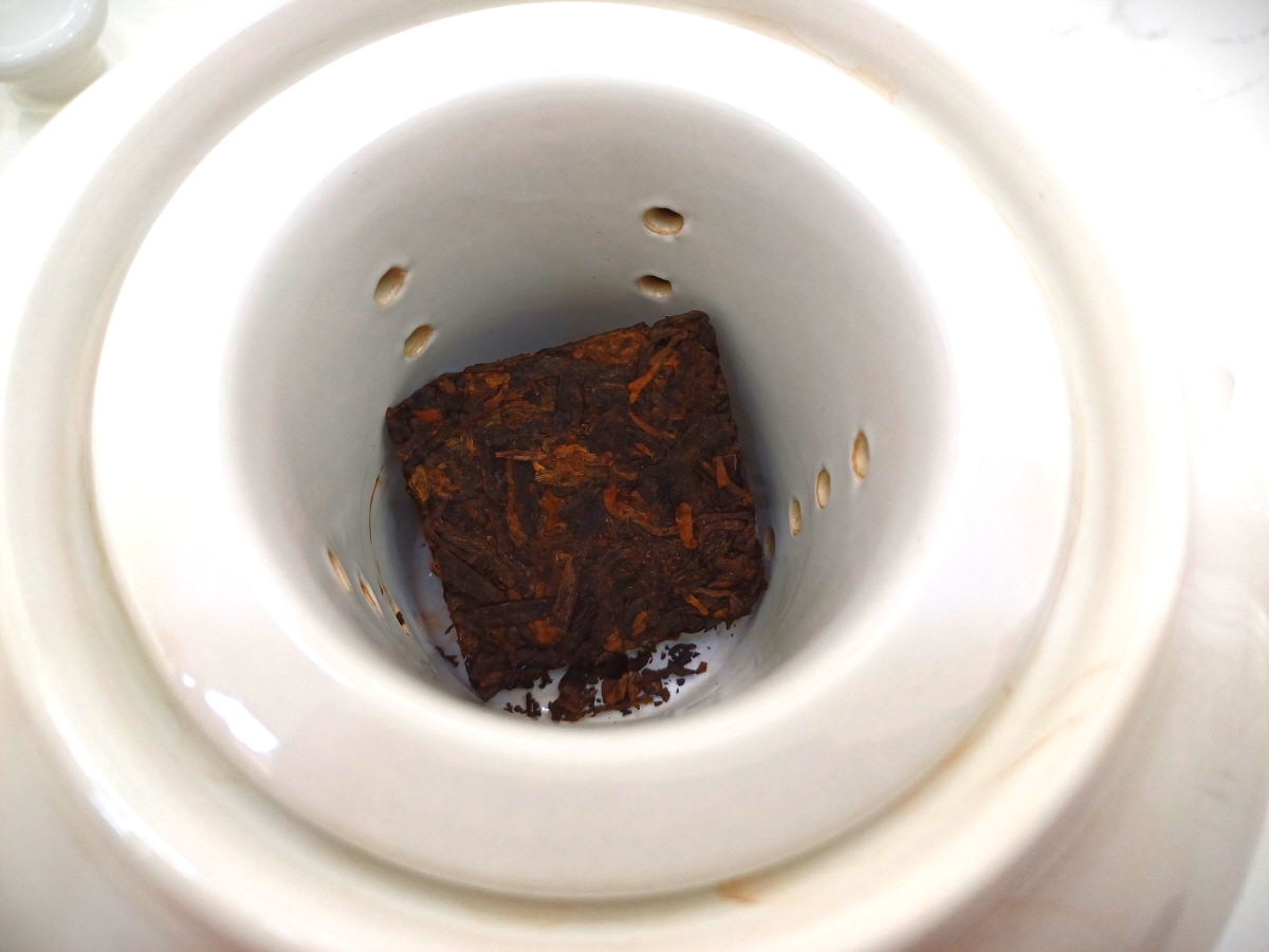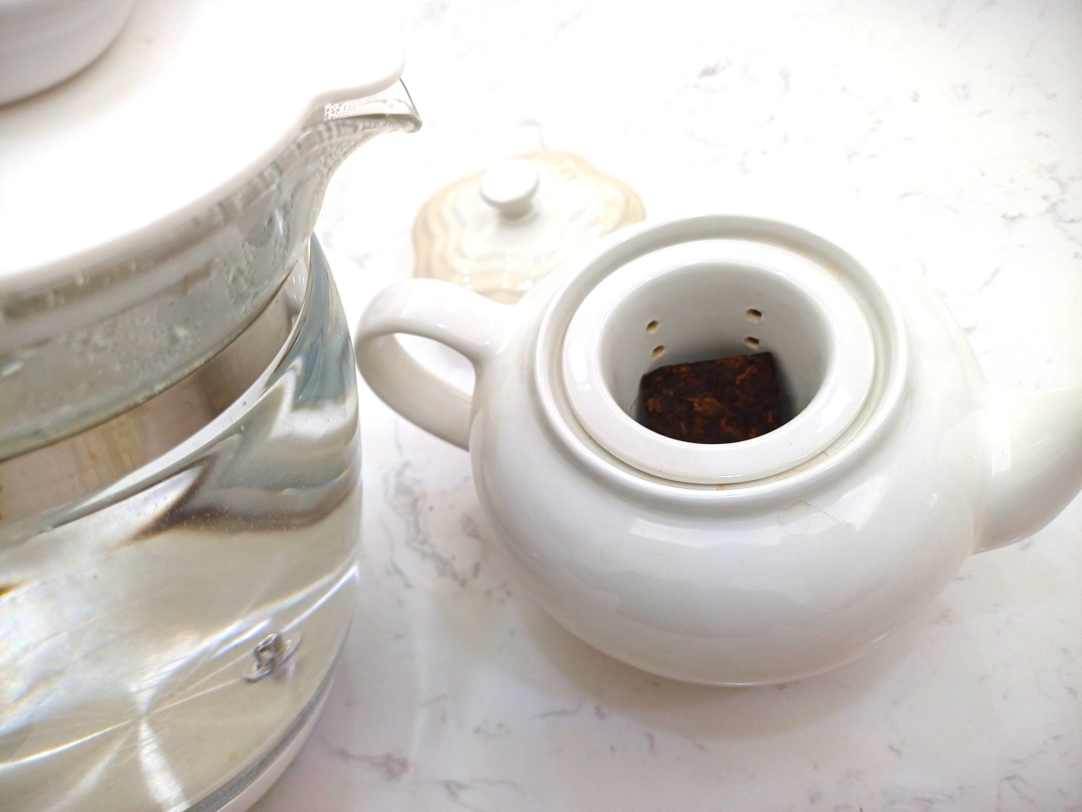커다란 보이차 덩어리에서 떼어내는 번거로움 없이 종이 포장만 벗겨서 주전자에 넣어서 차를 우리니 정말 편했다.