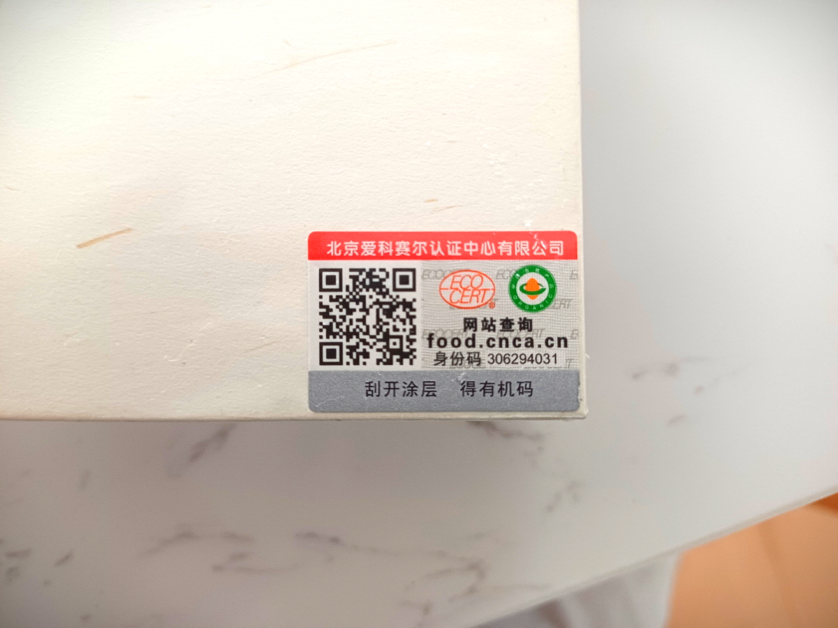 제품 하단에 유기농 인증 여부를 QR코드를 스캔해서 확인이 가능하도록 인증 스티커가 붙여있다. 유기농 여부에 대해서는 큰 관심이 없어서 그냥 확인은 하지 않았다.