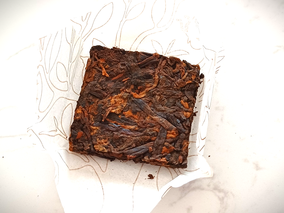무슨 작은 과자처럼 아담하게 포장되어 있는 모습이 참 인상적이다. 종이 포장을 펼치니 보이 숙차의 구수한 향기가 코를 자극한다.