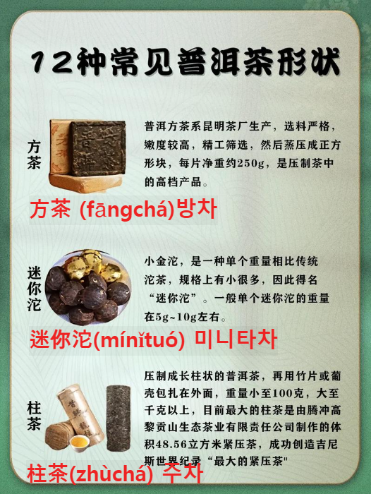 기존 보이차의 12종 형태에 대한 좋은 자료가 있어서 공부도 해볼 겸 포스팅에 첨부를 해본다.
