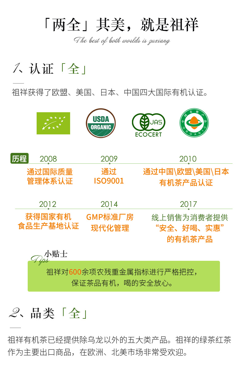 '조상(祖祥) 유기보이차(有机普洱茶)' 제품 정보
