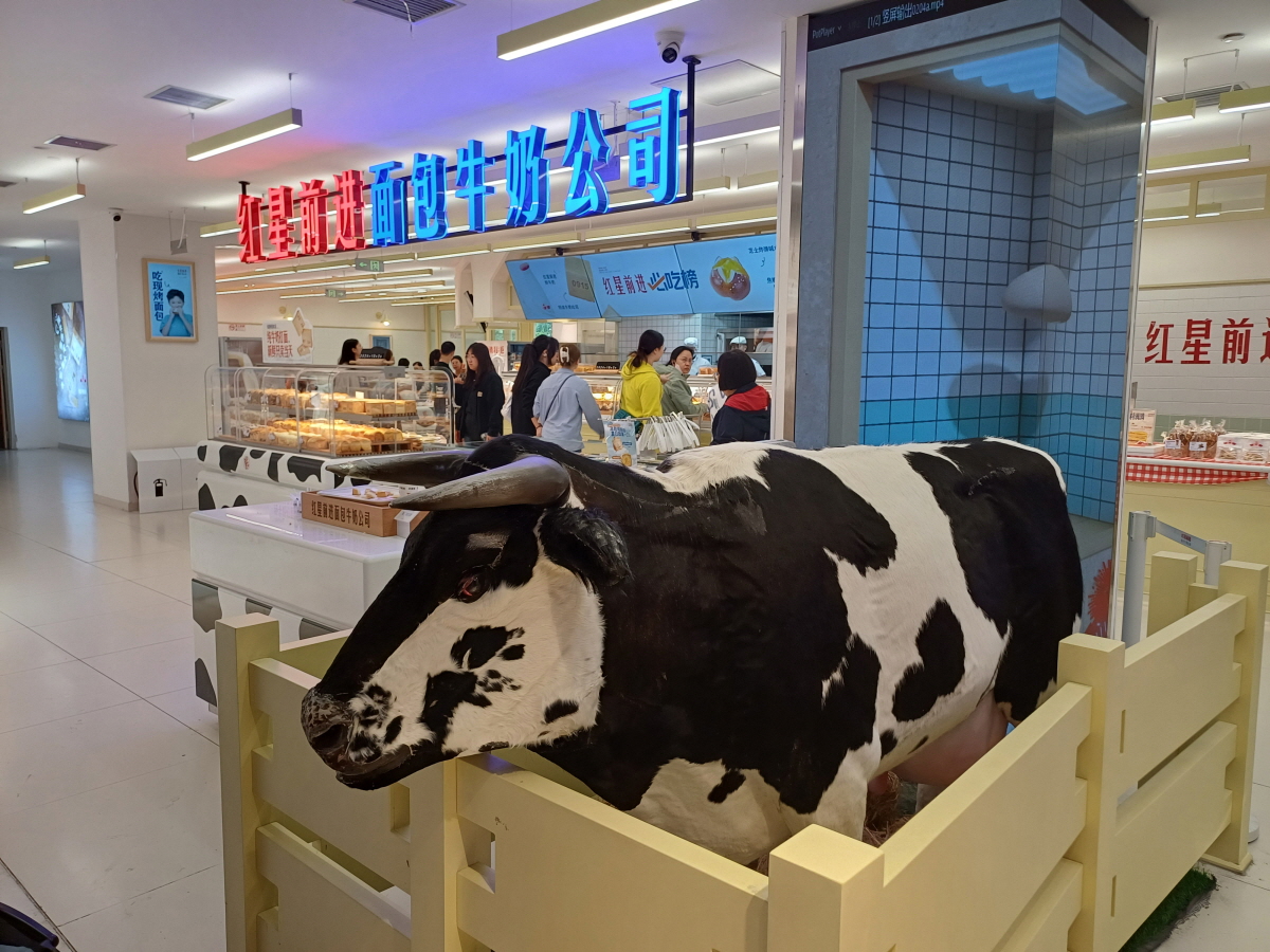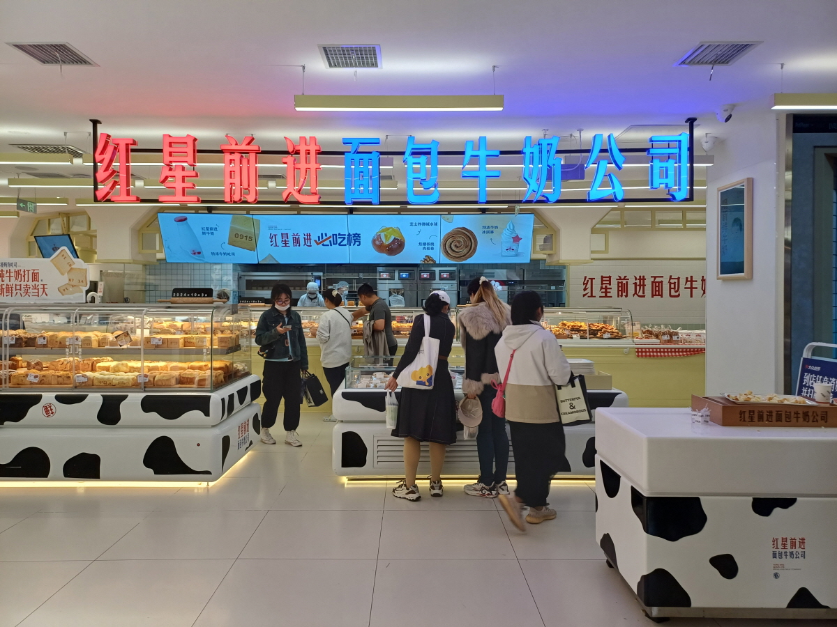 후식을 먹기 위해 방문한 곳은 '홍성전진베이커리(红星前进面包牛奶公司)'라는 곳으로, 1956년에 설립된 신 중국 최조의 분유 브랜드 회사다. 베이징의 홍성 이과두주와 마찬가지로 중국 인민을 대표하는 브랜드로 볼 수 있다.