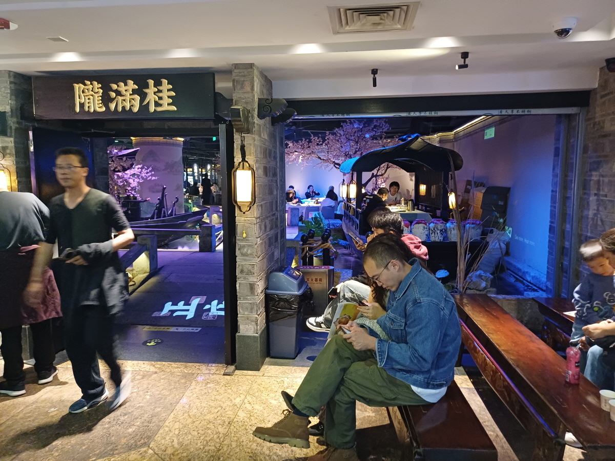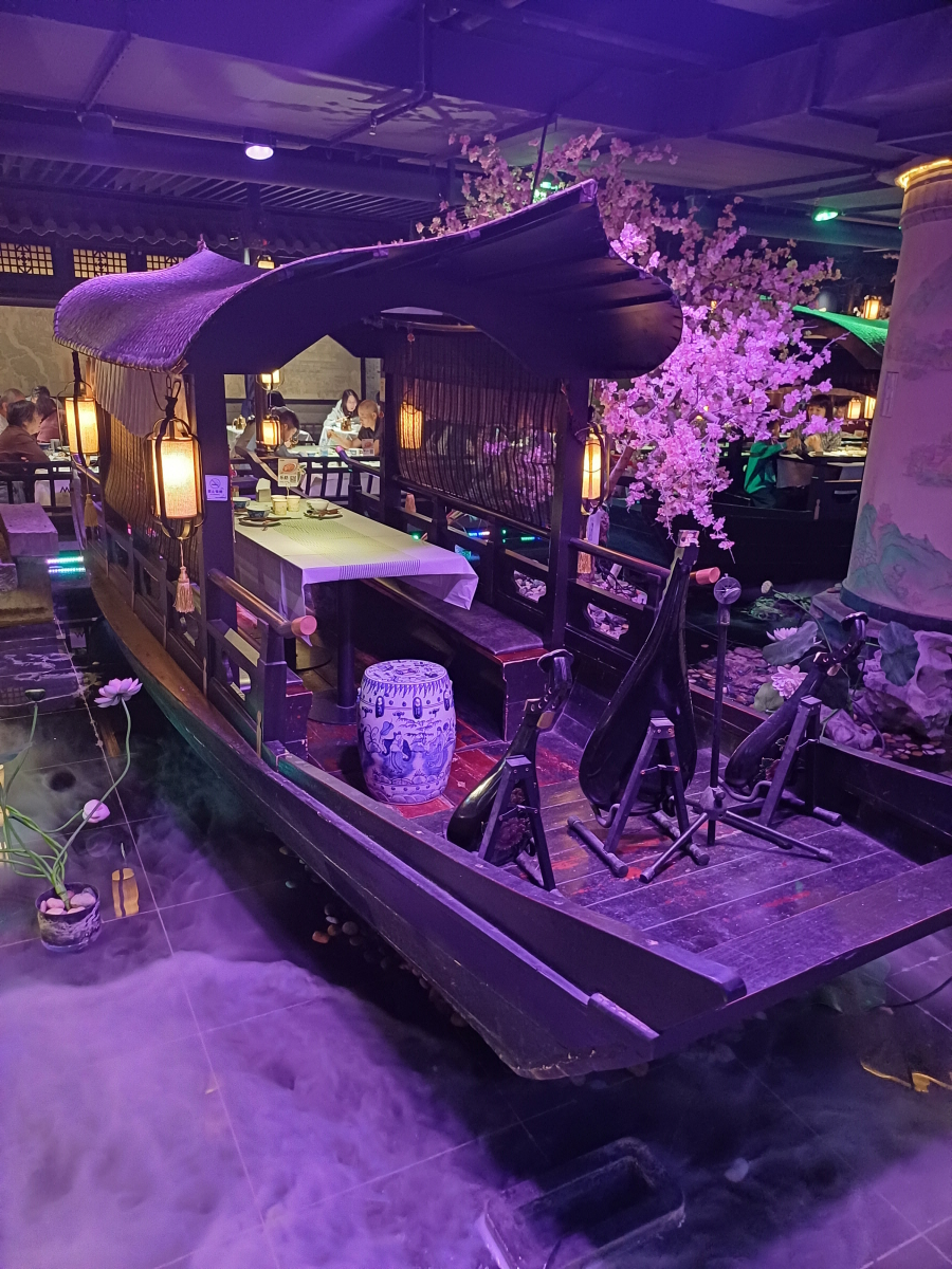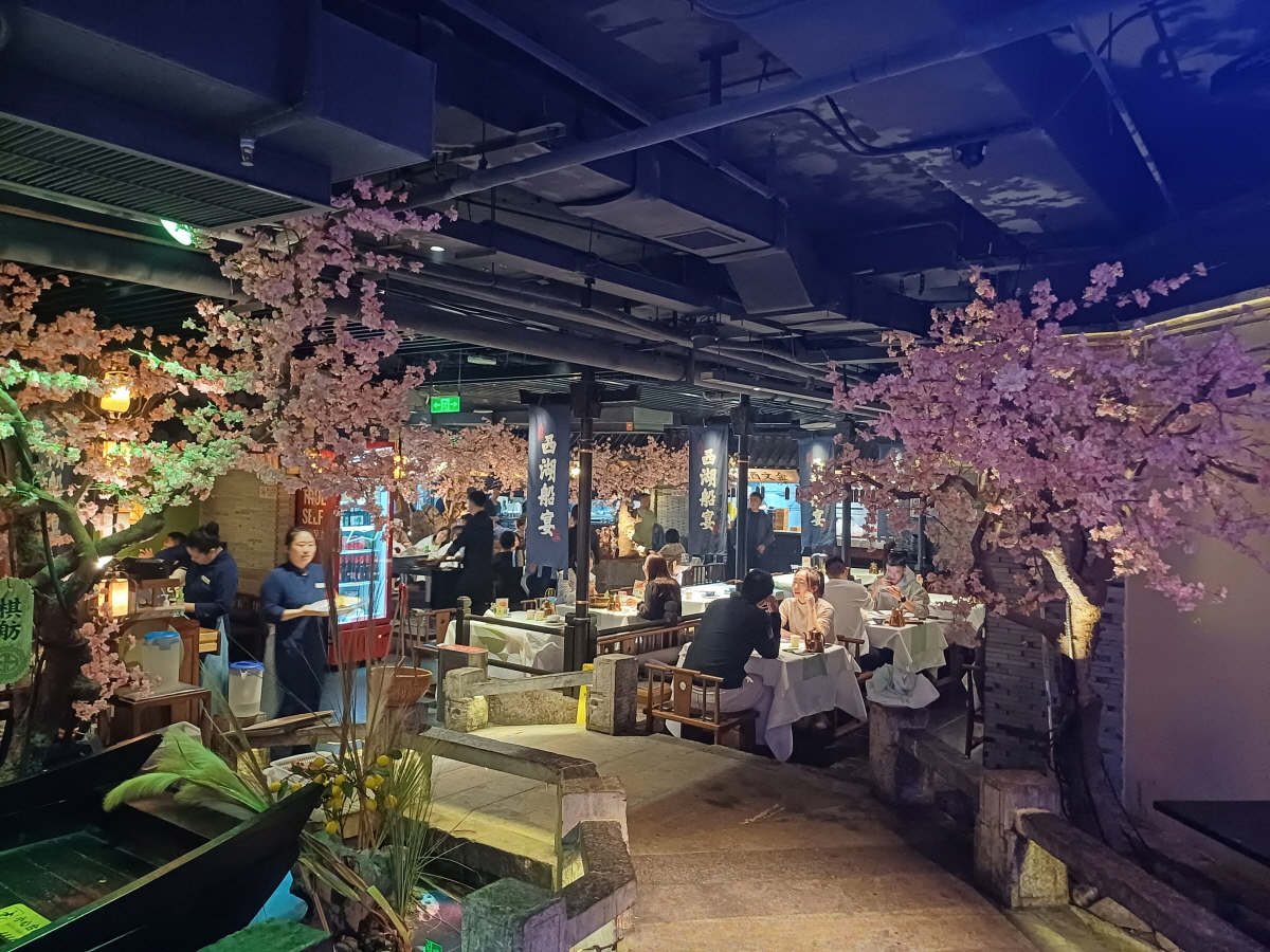 6~8층에 주로 식당가가 몰려 있는데 7층에 꾸이만롱(桂满陇)이라는 항저우 음식을 전문으로 하는 식당으로 향했다. 식당 안에 호수에 떠있는 배 형상을 한 좌석도 있고 내부 인테리어를 굉장히 잘해놨다.