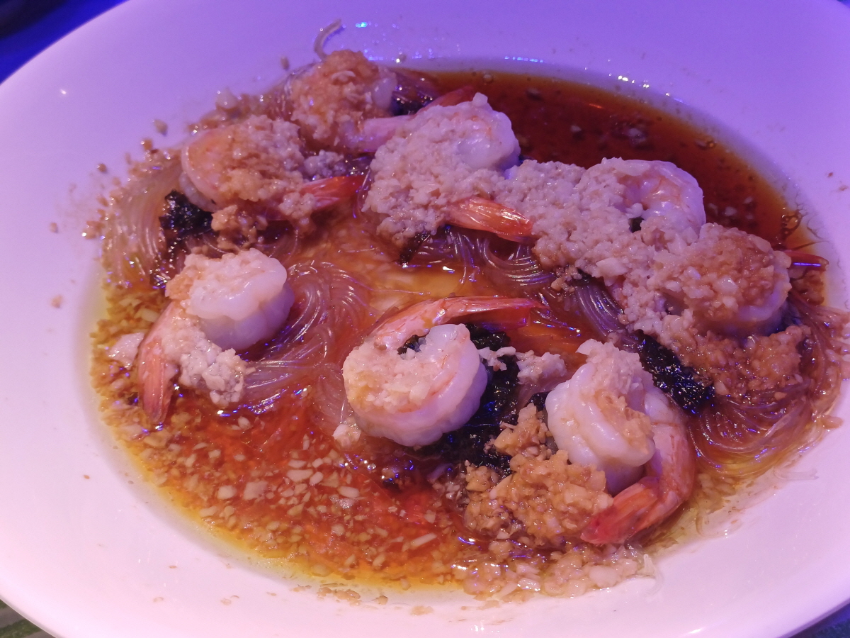 간장 소스에 당면과 새우 마늘을 곁들인 요리도 맛도 좋고 가성비 훌륭했다.
