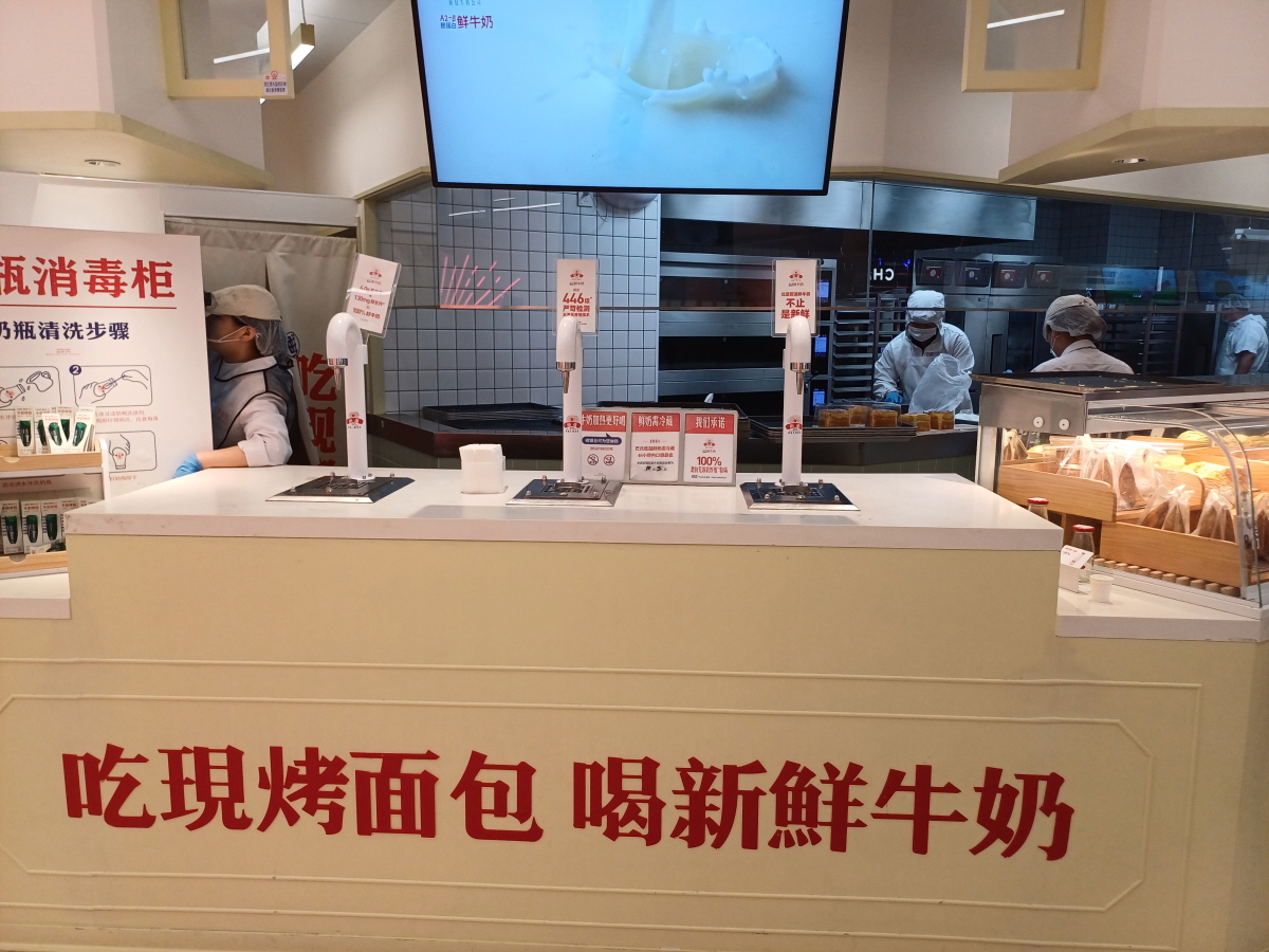 버튼을 직접 누르면 우유가 천천히 나오는데 빈 유리병에 가득 담아가면 된다. 뭔가 젖소에서 스스로 우유를 짜는 것 느낌이 들면서 머릿속에 신선함이 각인되는 순간이었다. 별 것 아니지만 참 마케팅을 잘하고 있다는 생각이 들었다.