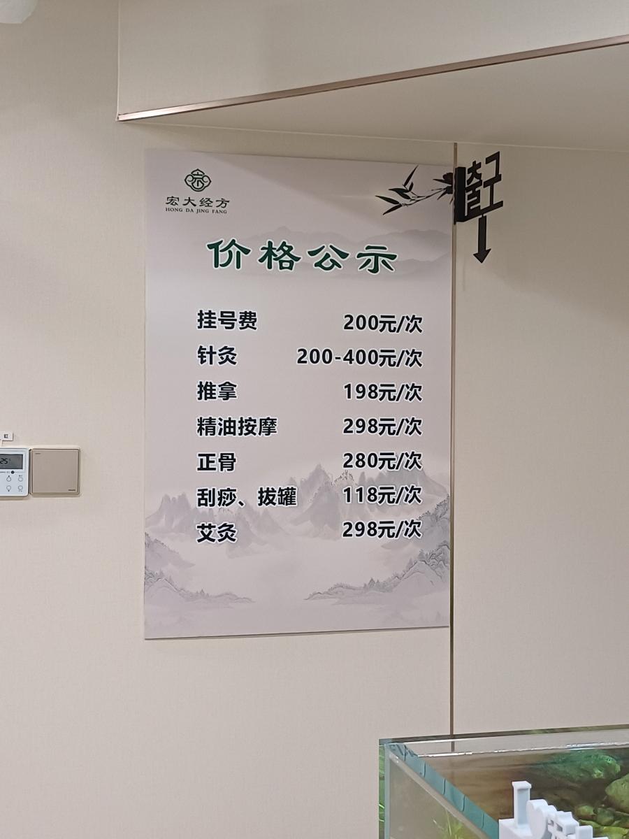 가격표가 걸려있는데 기본적으로 접수비가 200위안이고, 침이나 추나 같은 다른 한방 치료 가격도 명시되어 있었다.