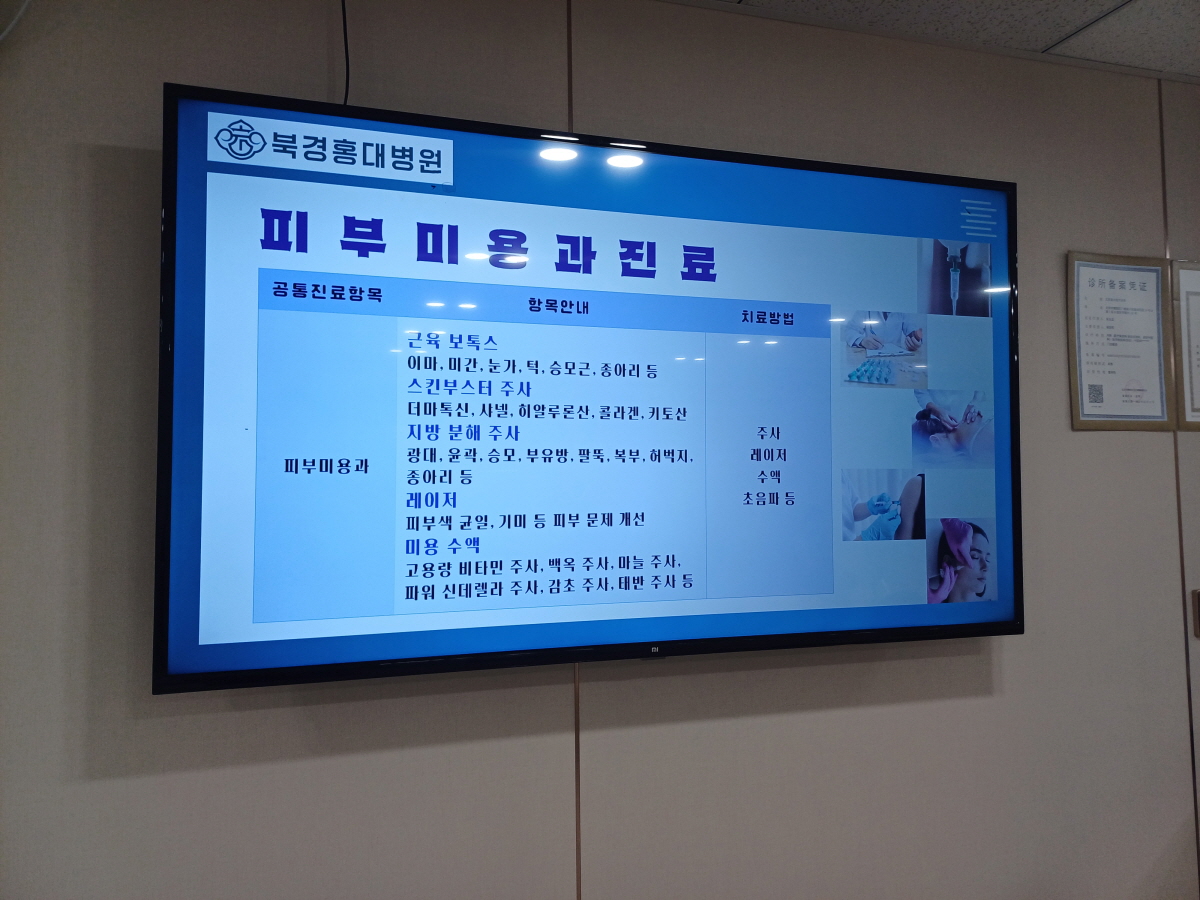 진료 항목이 많아서 다 촬영하지는 못했지만 한방진료와 기본적인 양의 진료, 미용진료를 취급하고 있는 것 같았다. 크게 아픈 경우가 아니라면 이곳에서도 어지간한 진료는 다 가능하겠다는 생각이 들었다.