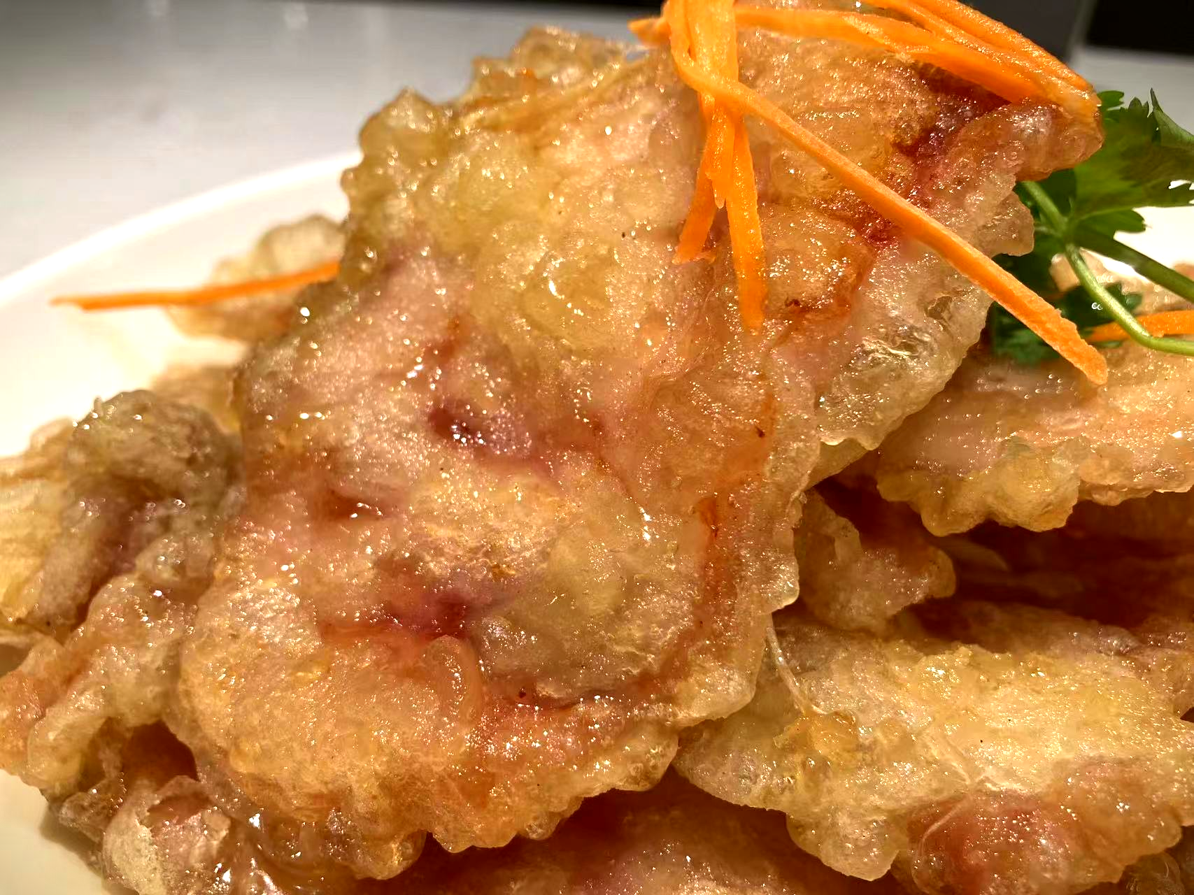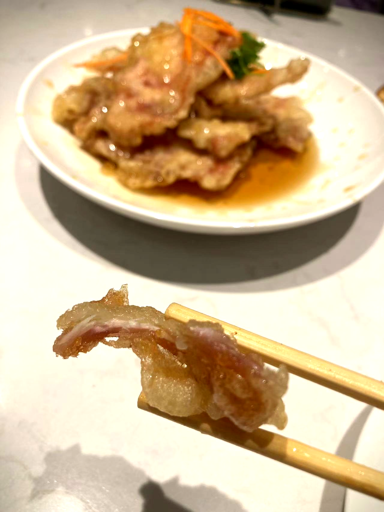 오늘의 메인 메뉴인 꿔바로우가 이어서 나왔다. 정말 많은 곳에서 꿔바로우를 먹어봤지만 이곳처럼 바삭바삭하게 요리하는 곳은 없었던 것 같다. 시간이 조금 지나면 눅눅해지는 경우를 많이 봤는데, 이곳의 꿔바로우는 시종일관 바삭바삭했다.