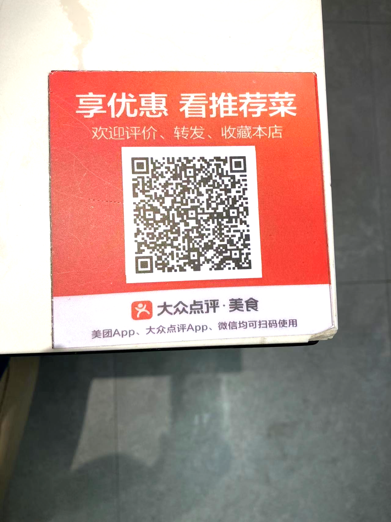 식당 위챗 공중계정(公众号)이나 다종디엔핑(大众点评)에 바로 접속 가능한 QR코드도 곳곳에 자리 잡고 있다.