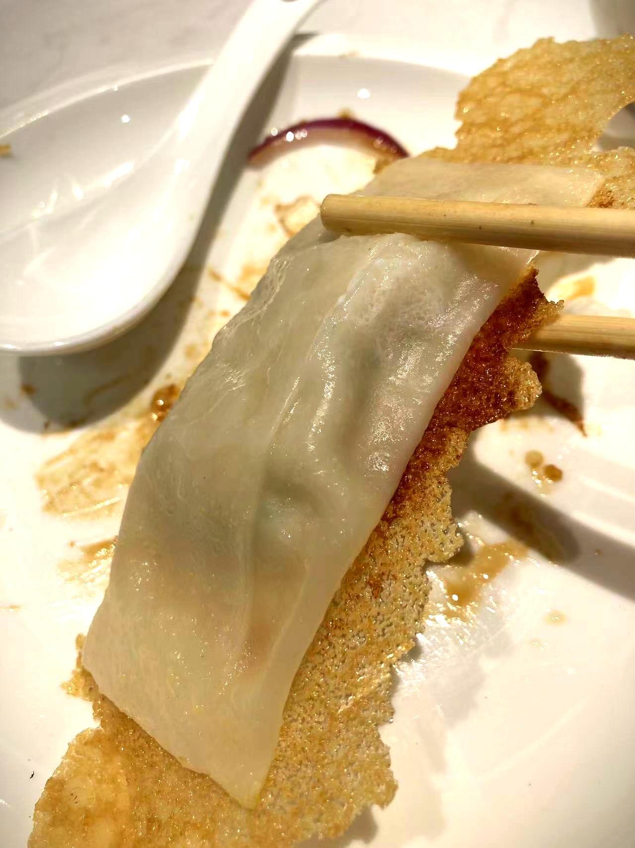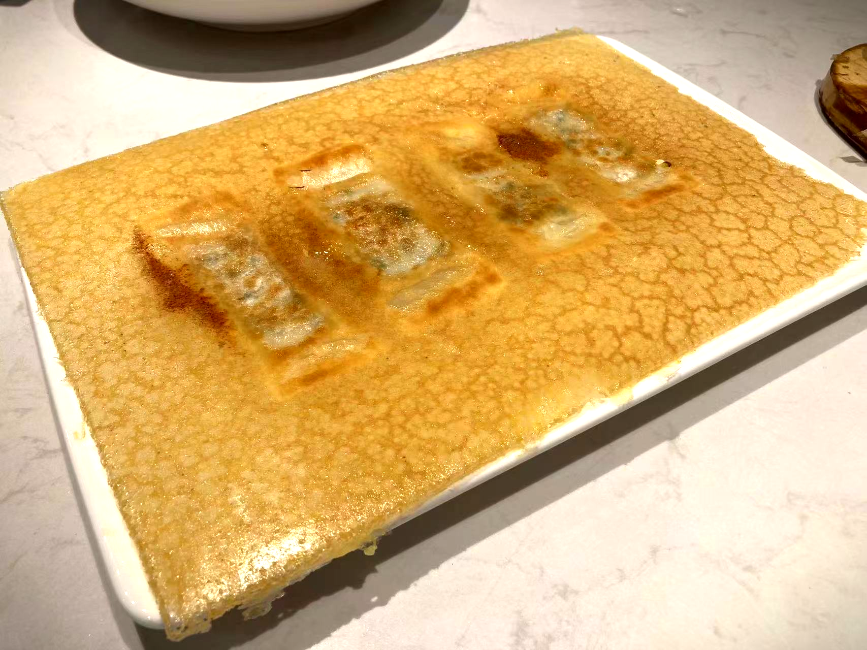 마지막으로 장어 군만두가 나왔다. 군만두는 총 4개인데 접시 하나를 가득 채우는 얇은 튀김이 정말 인상적이었다. 튀김 부분은 극강의 바삭거리는 식감을 느낄 수 있고, 반면 만두피는 부드럽고 속은 촉촉했다. 튀김이 부서지지 않게 한 접시 담아내는 요리사의 스킬 정말 인정한다!
