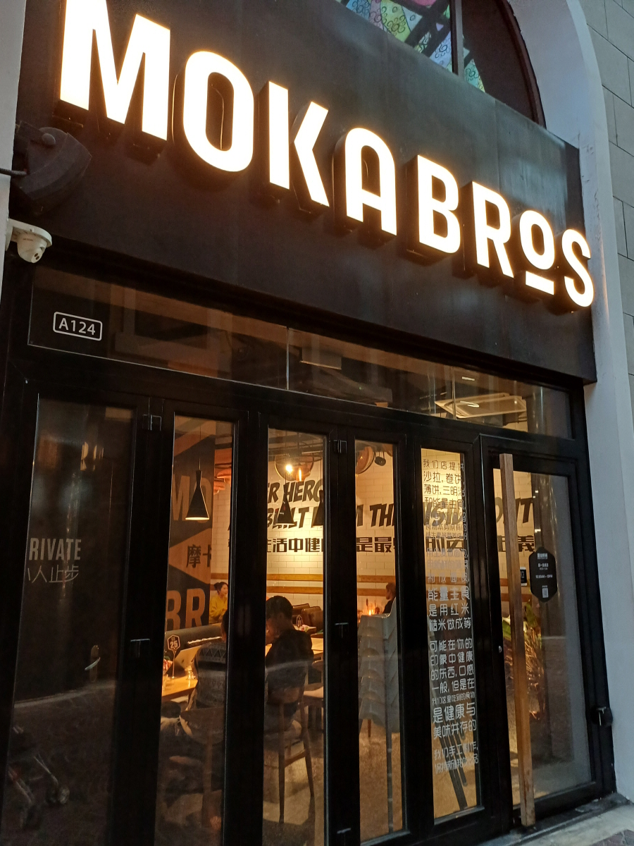 주변을 좀 둘러보다 모카 브로스라는 분위기 좋아 보이는 식당이 있어서 바로 들어가 봤다. 따종디엔핑(大众点评) 평점 4.2로 아주 높은 편은 아니지만, 간단한 음식과 음료와 주류를 판매하는 식당으로 가성비 식당 느낌이었다.
