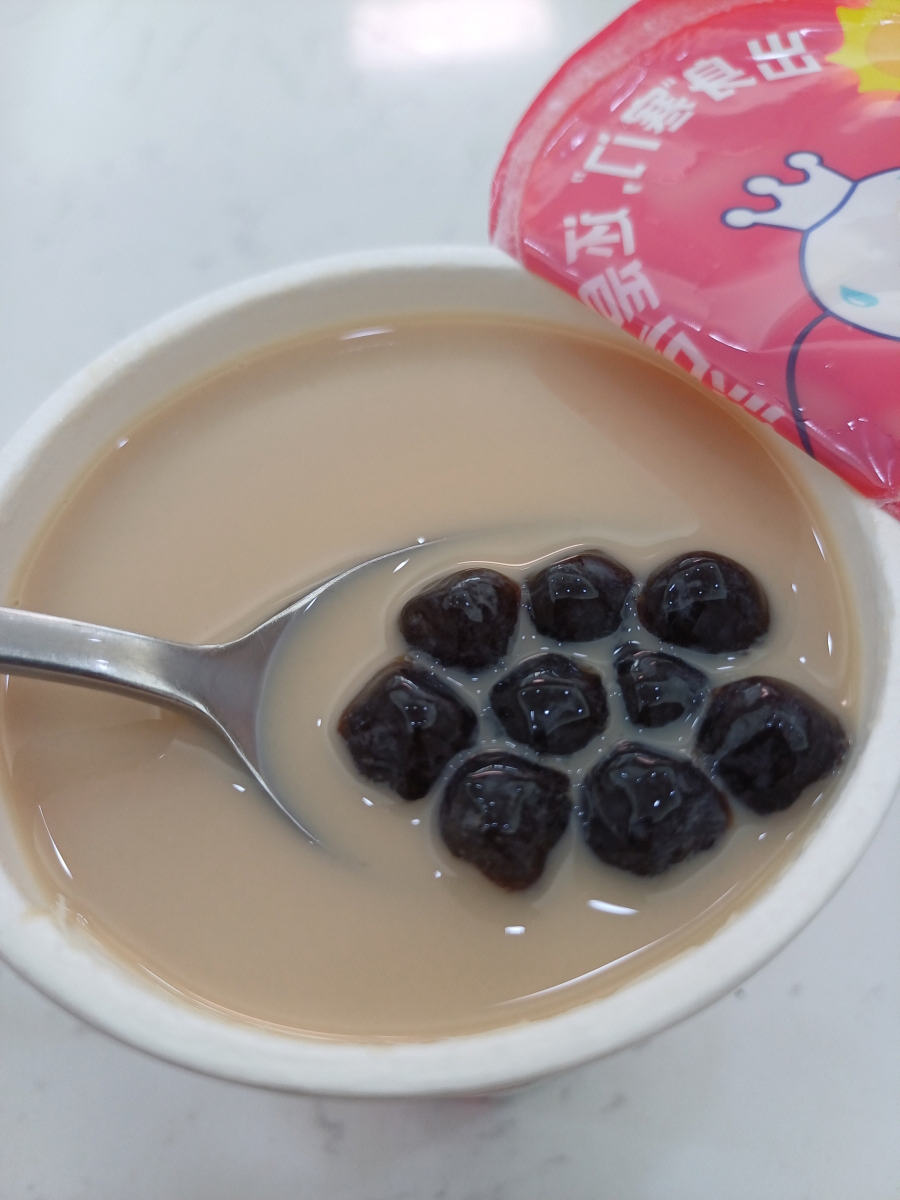 타피오카 펄이 육안으로 보이지 않길래 포장을 뜯고 수저로 건져 올려봤는데 펄이 굵직했으며 어림잡아 20개 정도 되는 양이었다.