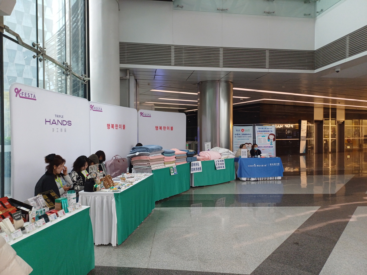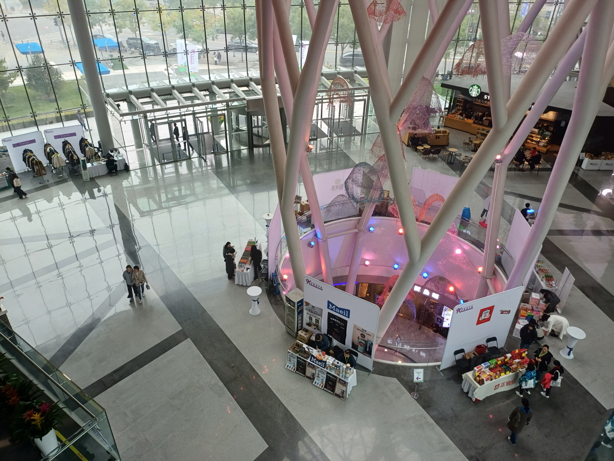 빌딩 1층 로비에는 다양한 한국 진출 기업들의 부스들이 마련되어 있었다.