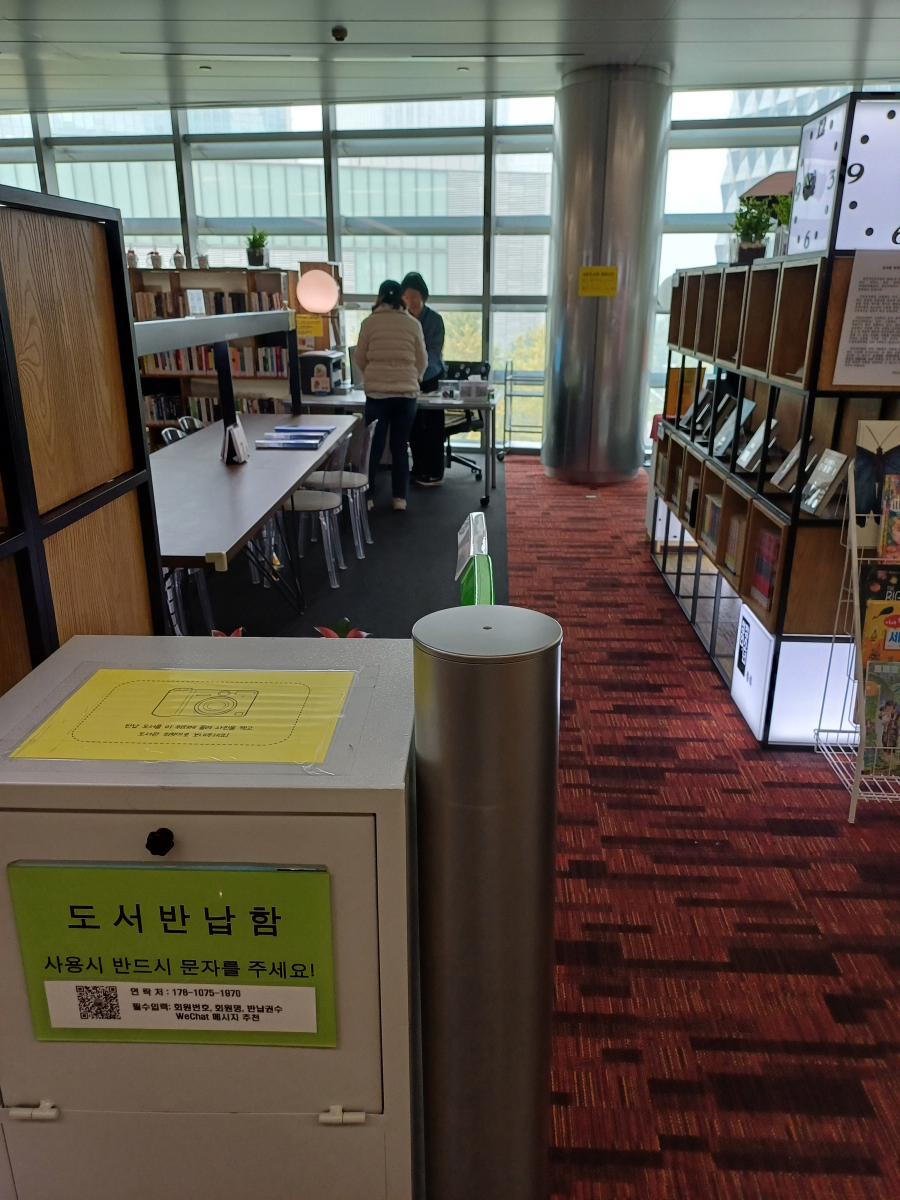 입구에 도서반납함도 있고, 온라인 문의가 가능한 위챗 계정도 운영하고 있었다.