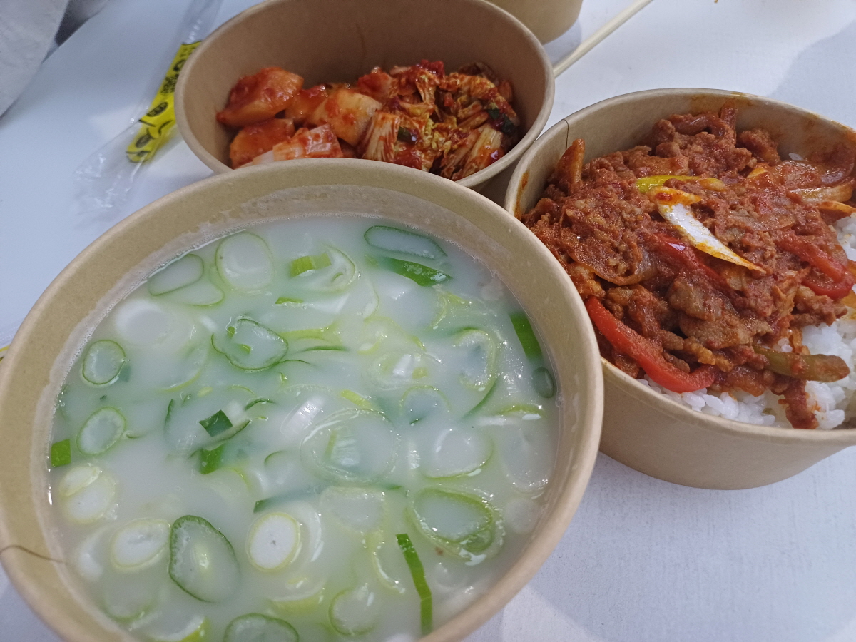 열심히 둘러본 뒤 명품육가라는 곳에서 제육볶음과 설렁탕을 구매해서 점심식사를 했다. 음식들도 너무 맛있었고 함께 준 김치도 정말 맛있었다. 다음에 기회가 되면 따로 구매를 해서 또 먹어봐야겠다.