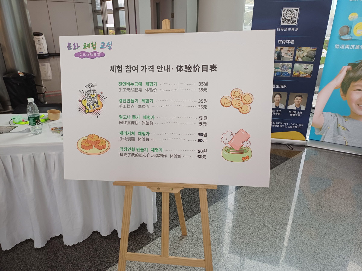 여러가지 문화 체험 교실이 있어서 살펴봤는데 달고나 뽑기가 5위안이라 한 번 참여해 봤다. 달고나는 사탕처럼 딱딱한데 쇠바늘이 아닌 나무 이쑤시개를 줘서 영 시원찮았다. 그냥 체험하는 것에 만족.