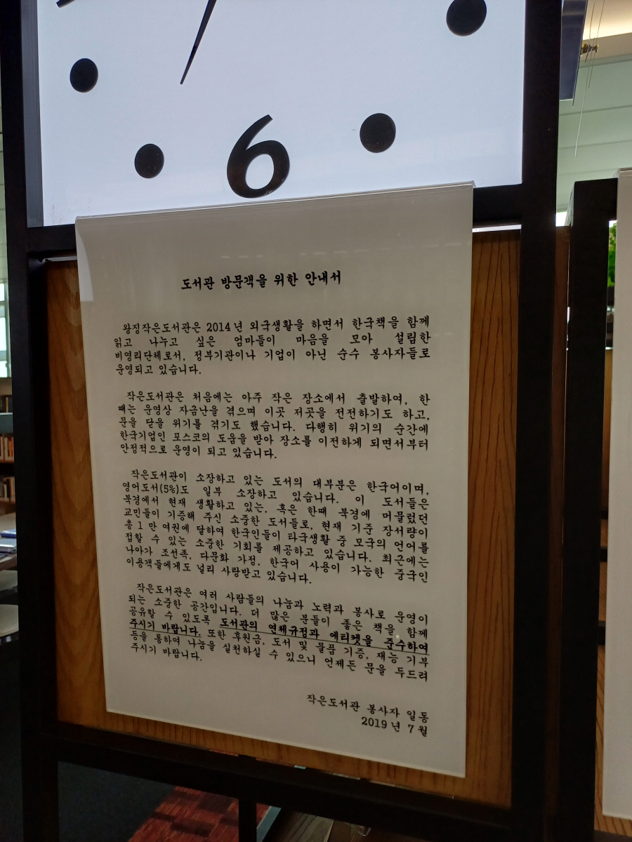 작은도서관 방문객을 위한 안내서를 읽어보니 이 도서관을 운영하기 위해 많은 한인들이 힘을 보태왔음을 알 수 있었다. 참 의미 있고 소중한 장소다.